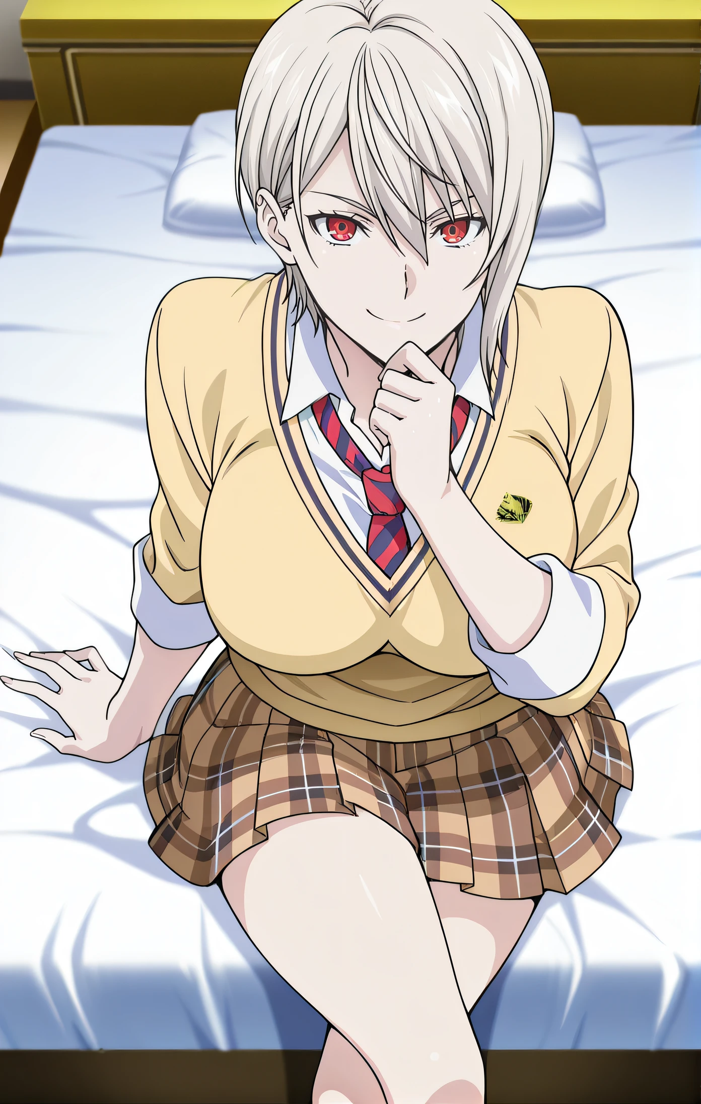nakirialice, white hair, short hair, red eyes, large breasts