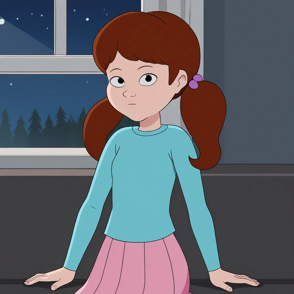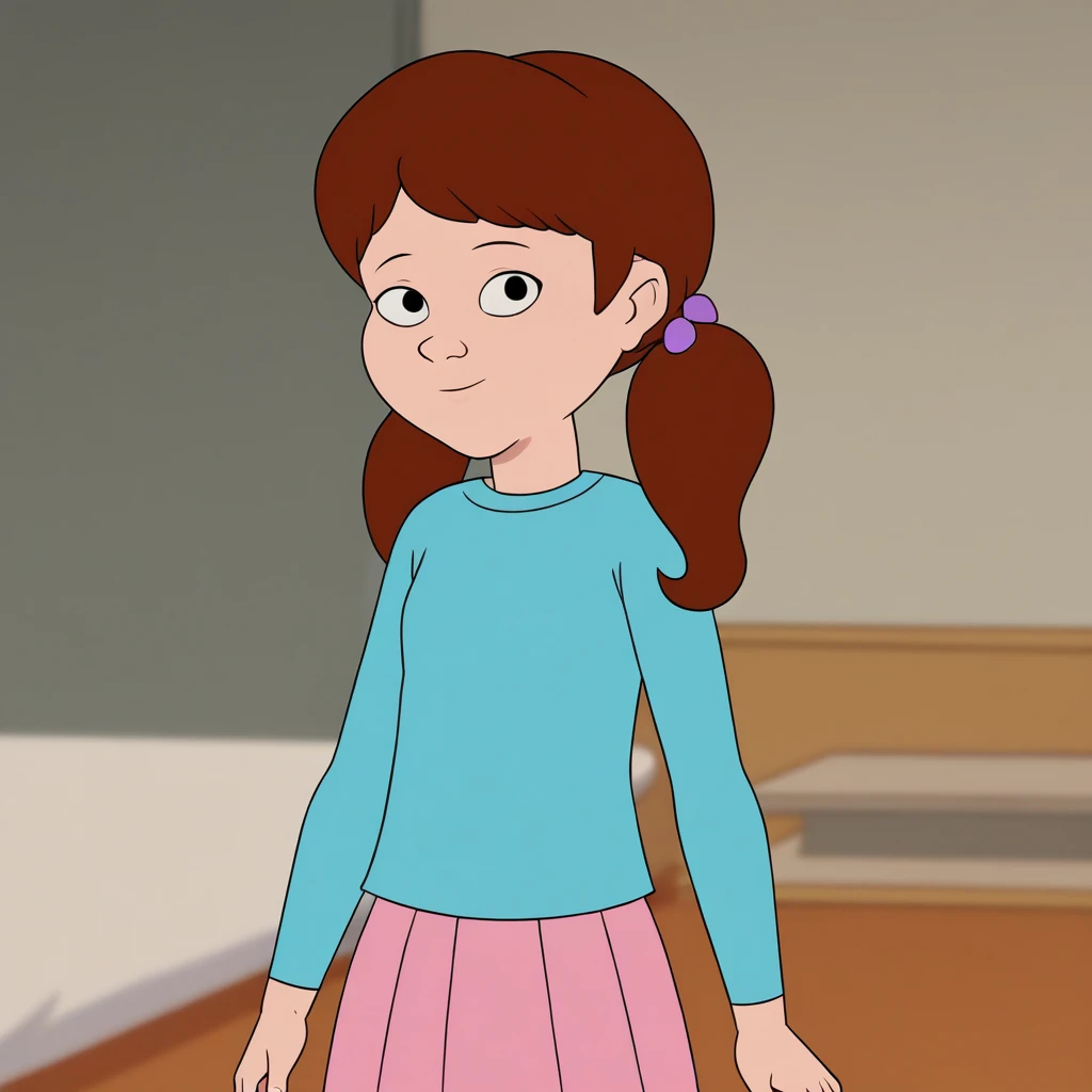 MAUREEN, solo, 1girl, solo, brown hair, twintails, black eyes,