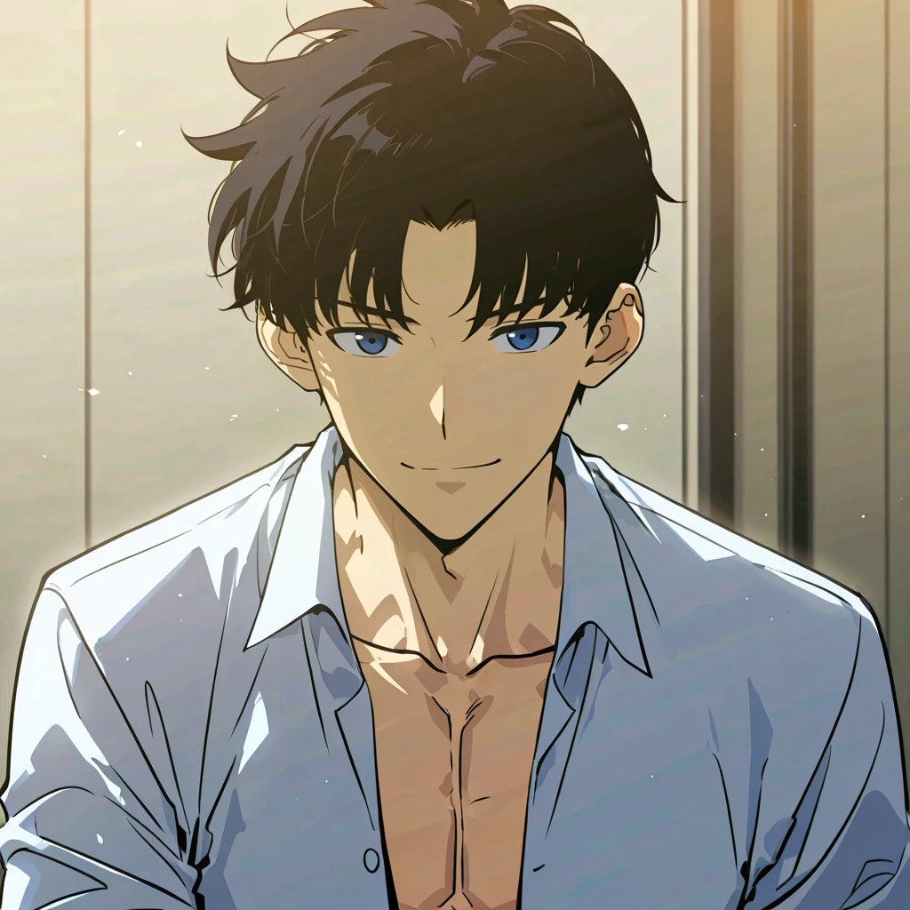 Trigger words: sung suho,black hair,short hair,blue eyes,black eyes