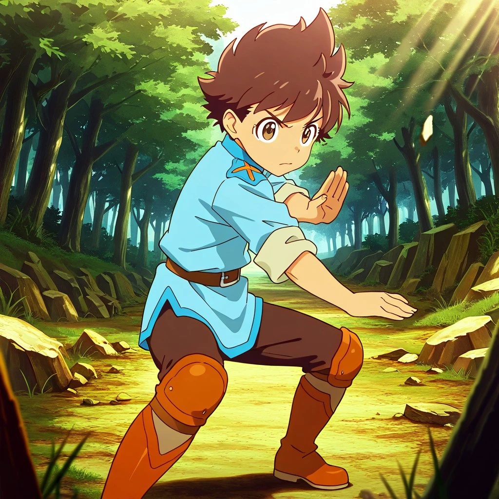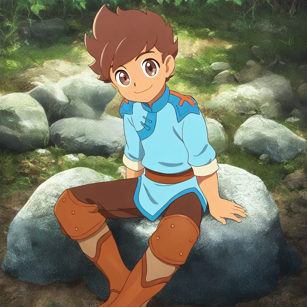 lu_mhs, 1boy, brown hair, brown eyes, shirt, pants, belt, boots