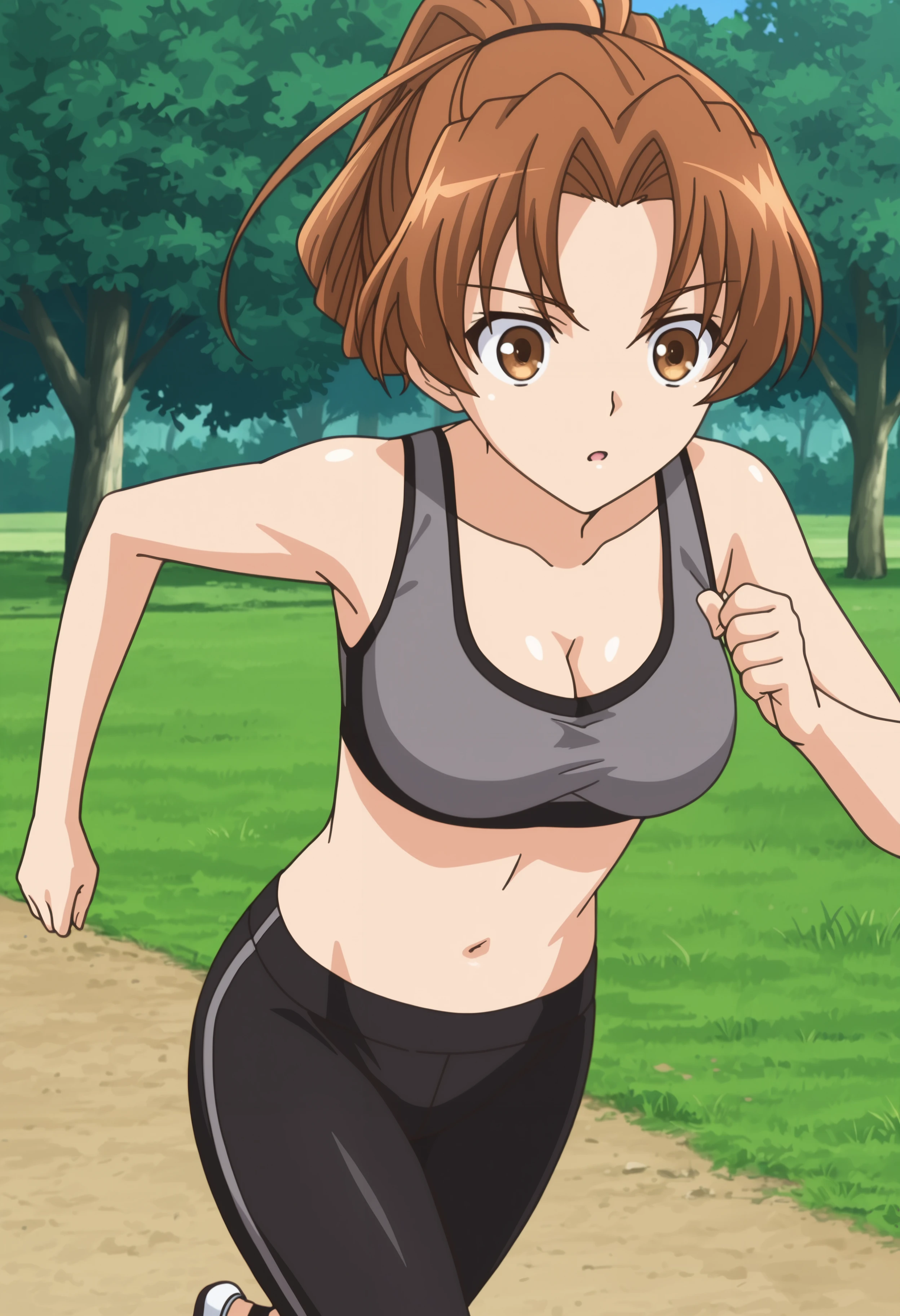 brown hair, folded ponytail, hair up,