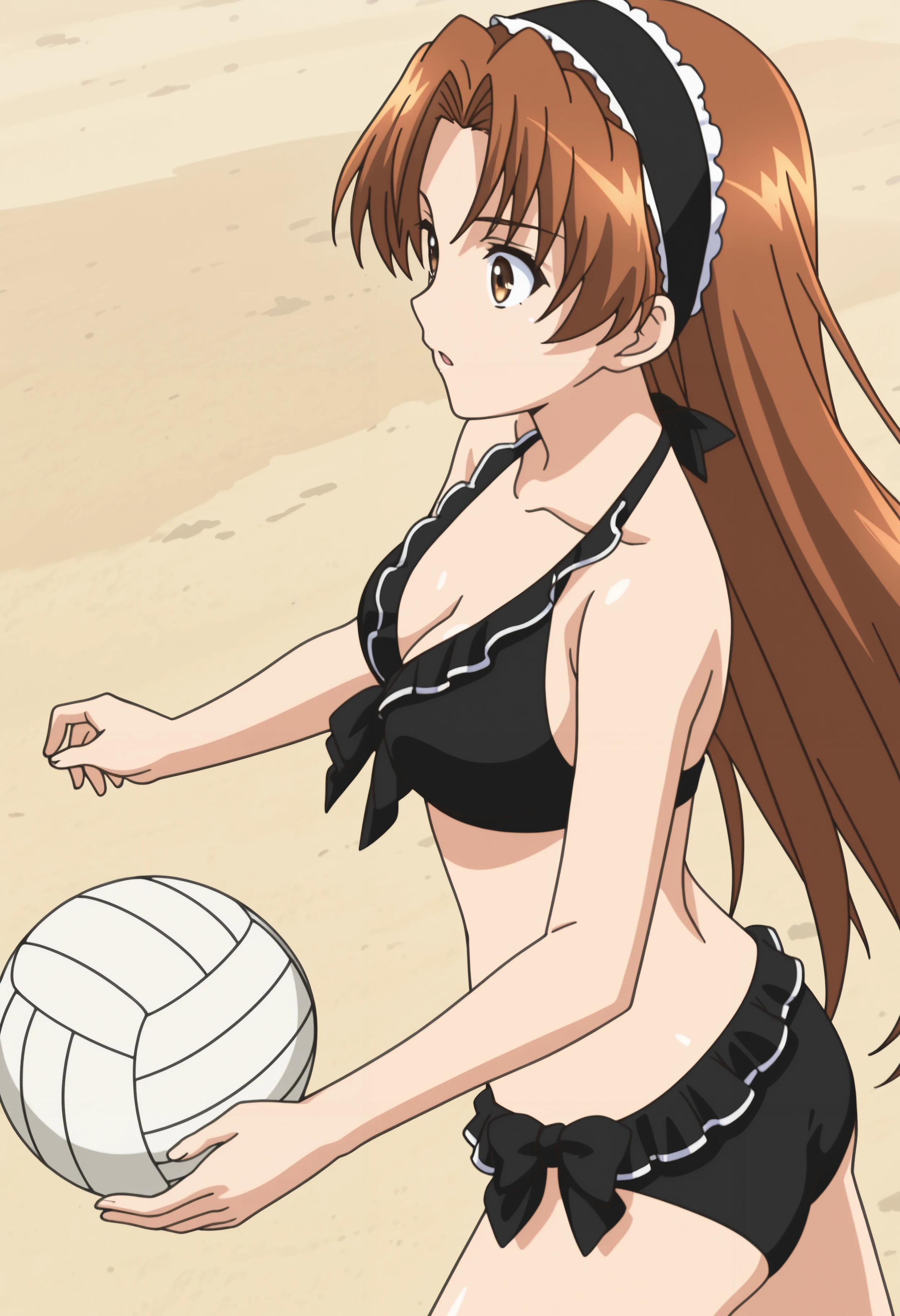 black bikini, frilled bikini,
