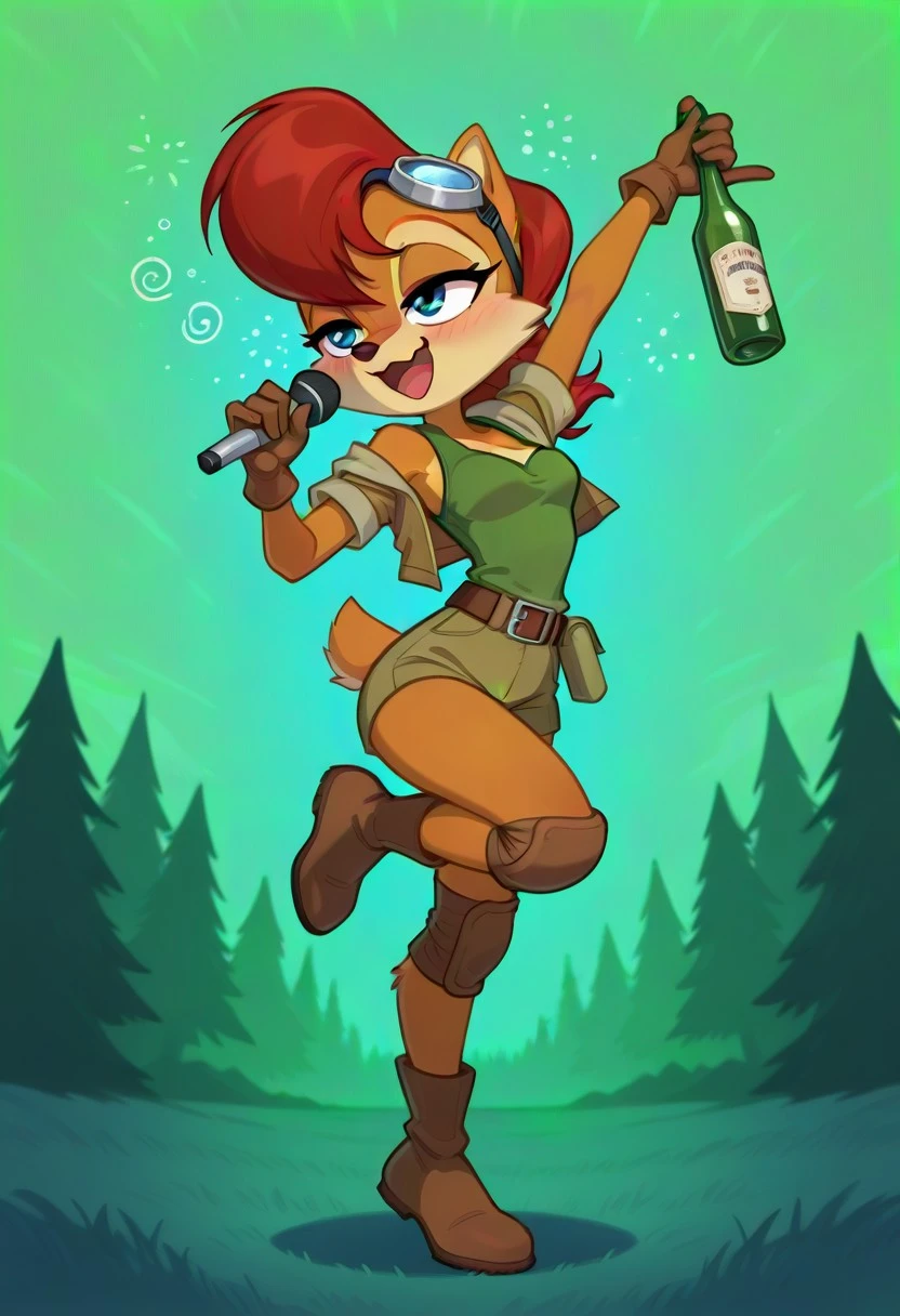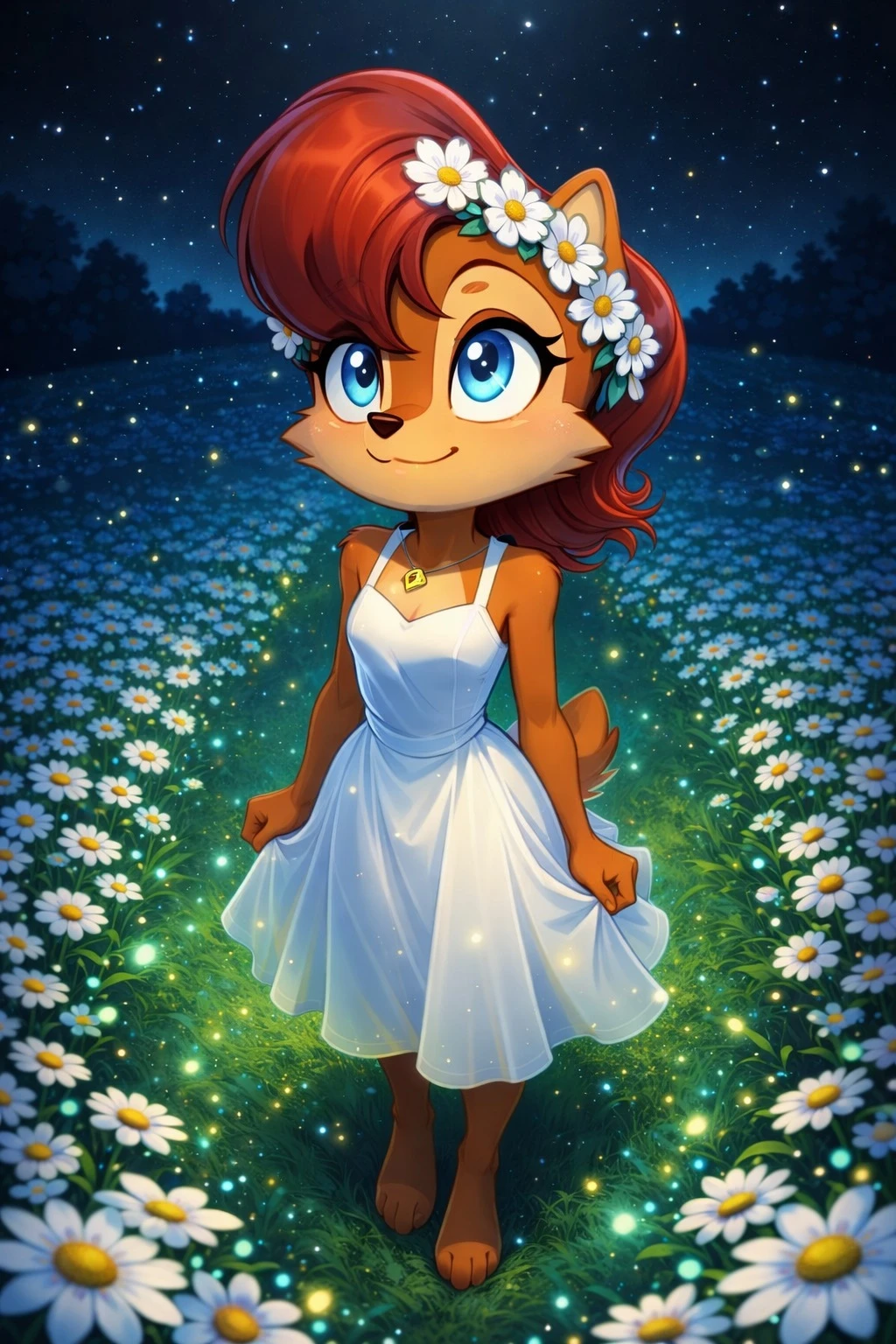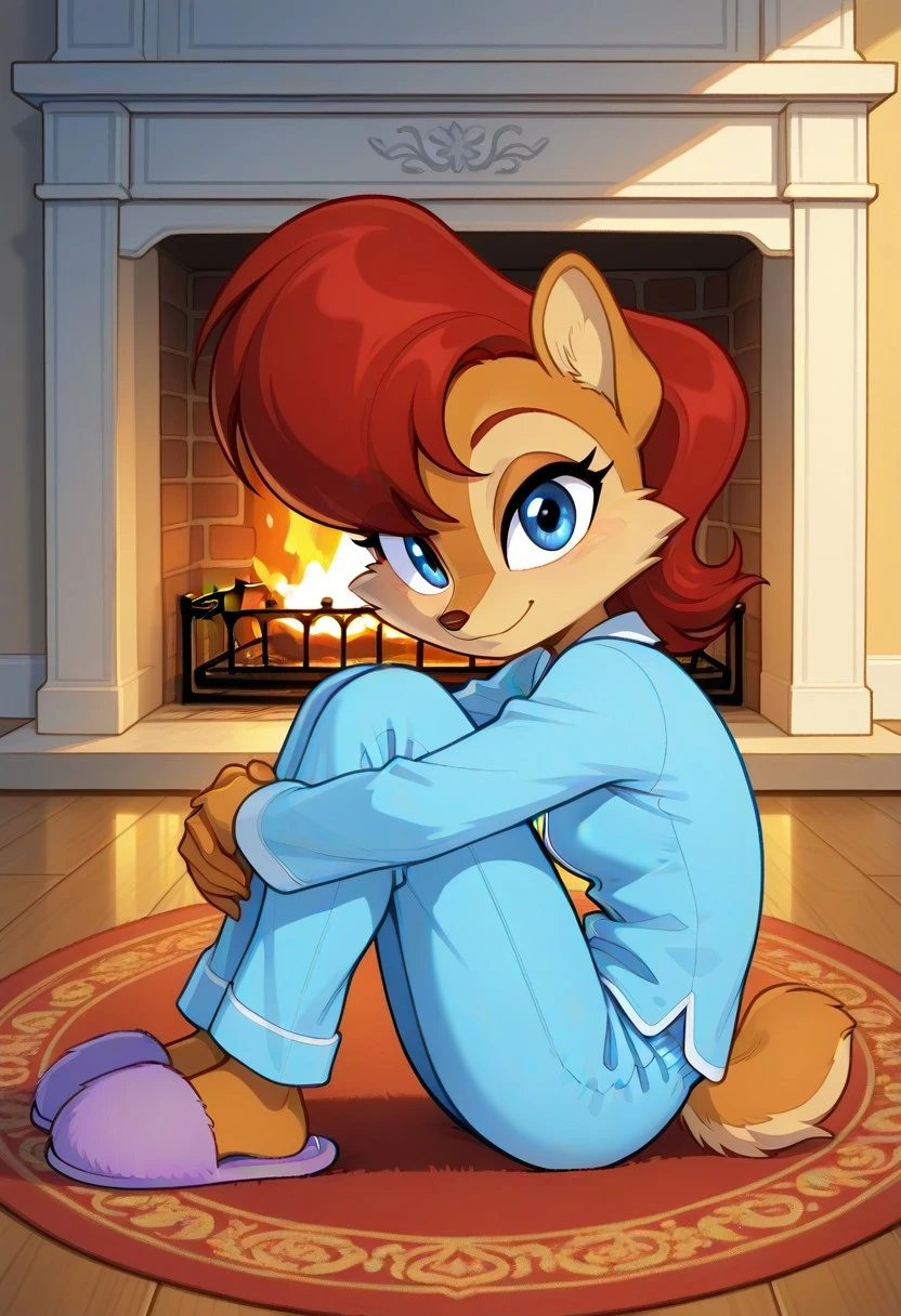 sally_acorn, 1girl, solo, furry, furry female, animal ears, animal nose, tail, blue eyes, red hair, body fur, two-tone fur,