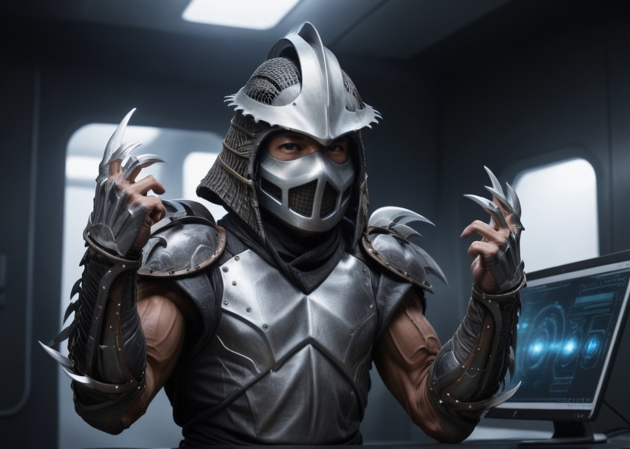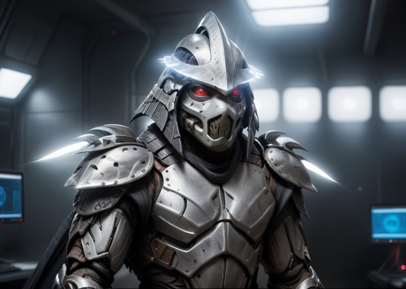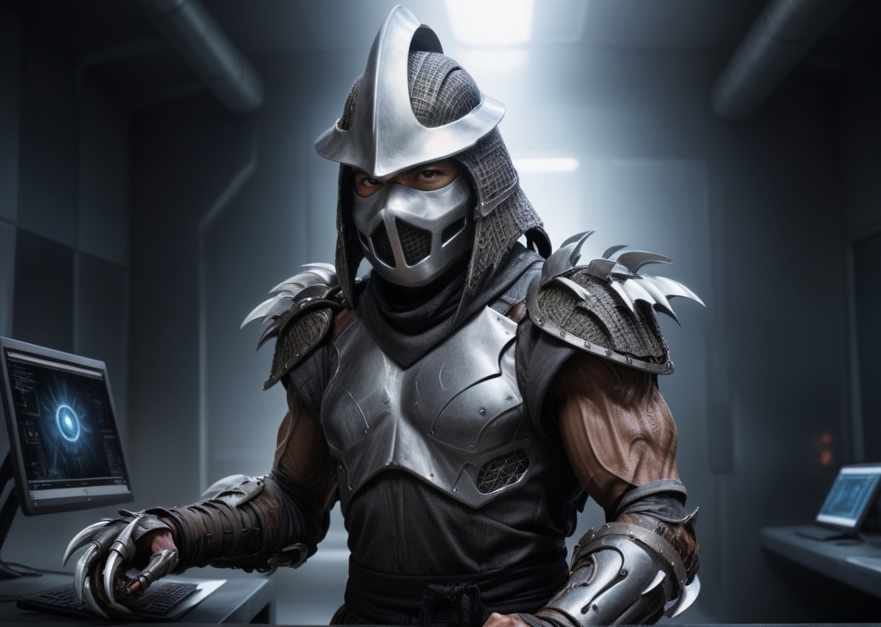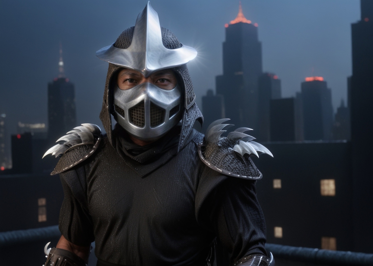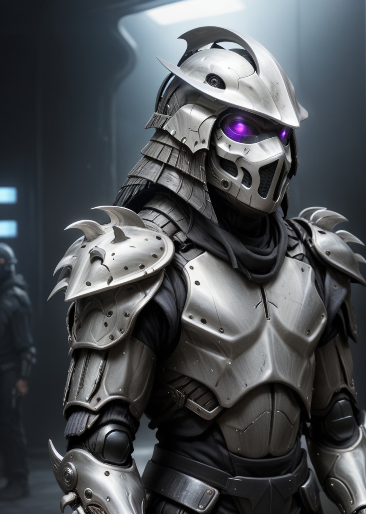 Depending on what your desire for outfit "a TMNTShredder 1man armored samurai knight with claw gauntlets, wearing a purple/red-purple outfit with pauldrons and metal samurai helmet with mask" (exchange purple or red-purple for whichever style you prefer, or exclude the highlighted text entirely to get more artistic variations of the outfit).