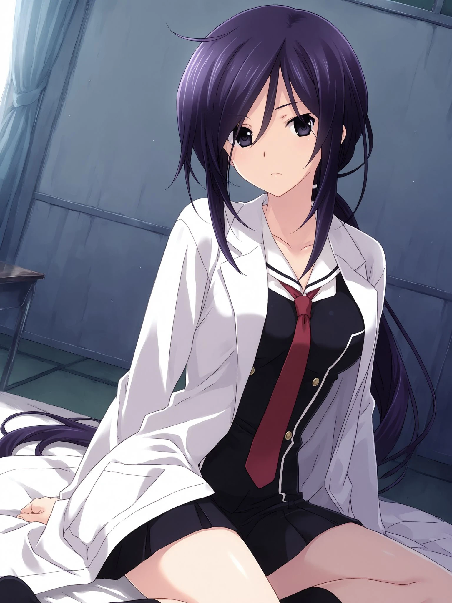 labcoat,long sleeves,school uniform,red necktie,socks,