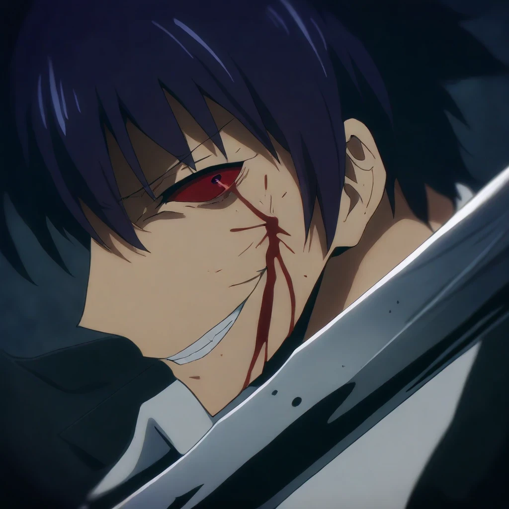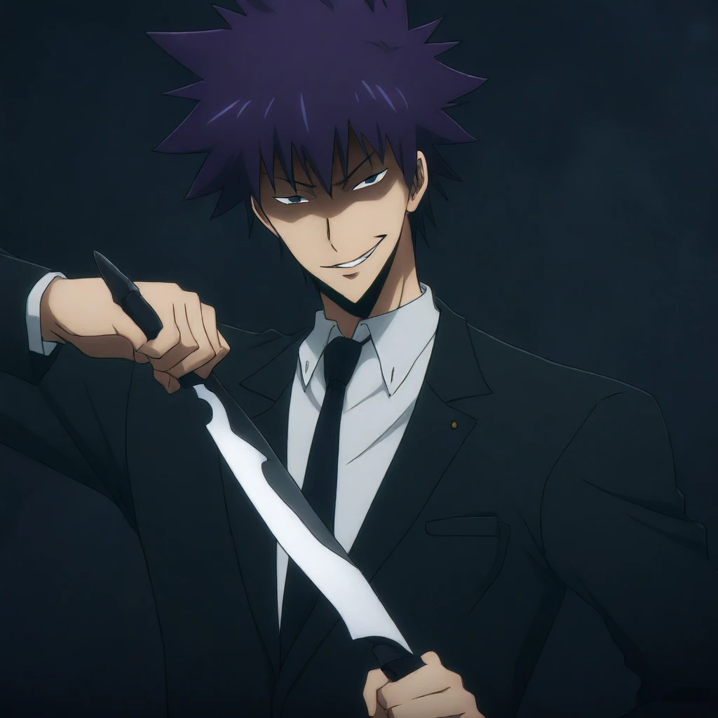 blue eyes, Purple hair, spiked hair,