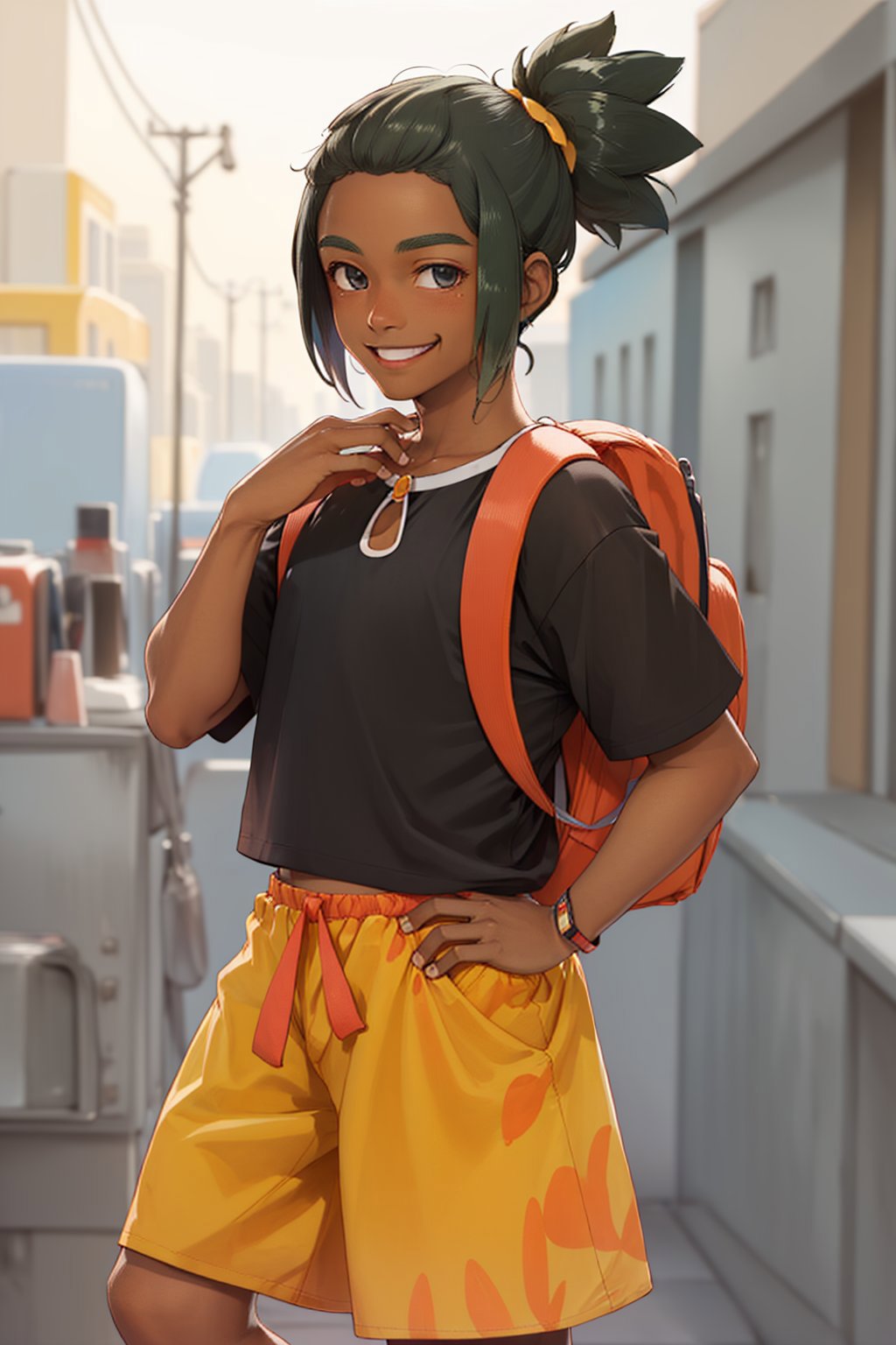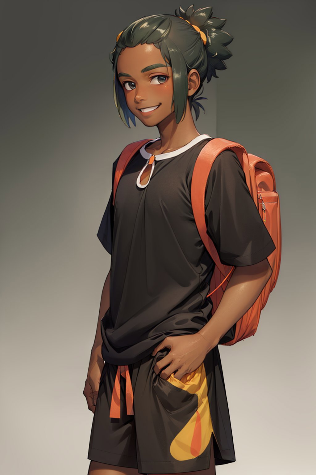 Trigger + Appearance: pokemonhau, dark skin, dark-skinned male, short ponytail