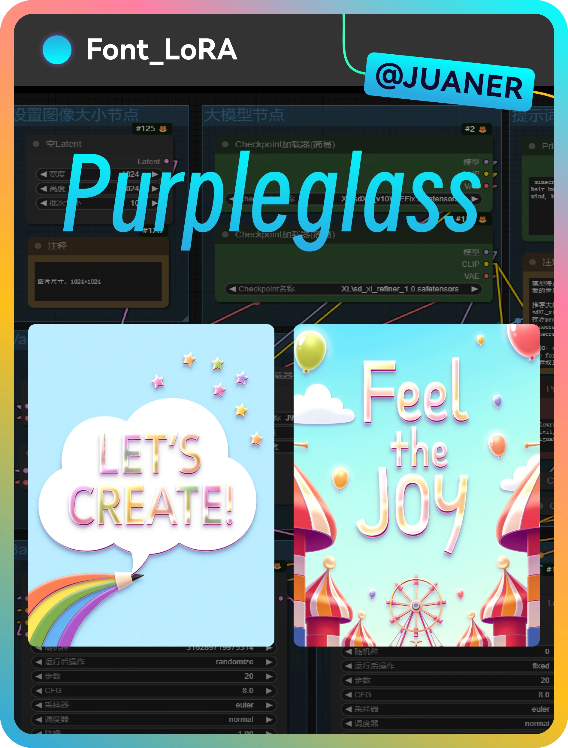 这是一个测试flux字体训练的模型,数据集共10张,训练总步数600步,主要风格是表面带有磨损的蓝色红色金属材质渐变色的字体。在4090上总训练时长20分钟,数据集我会分享在https://huggingface.co/juaner0211。