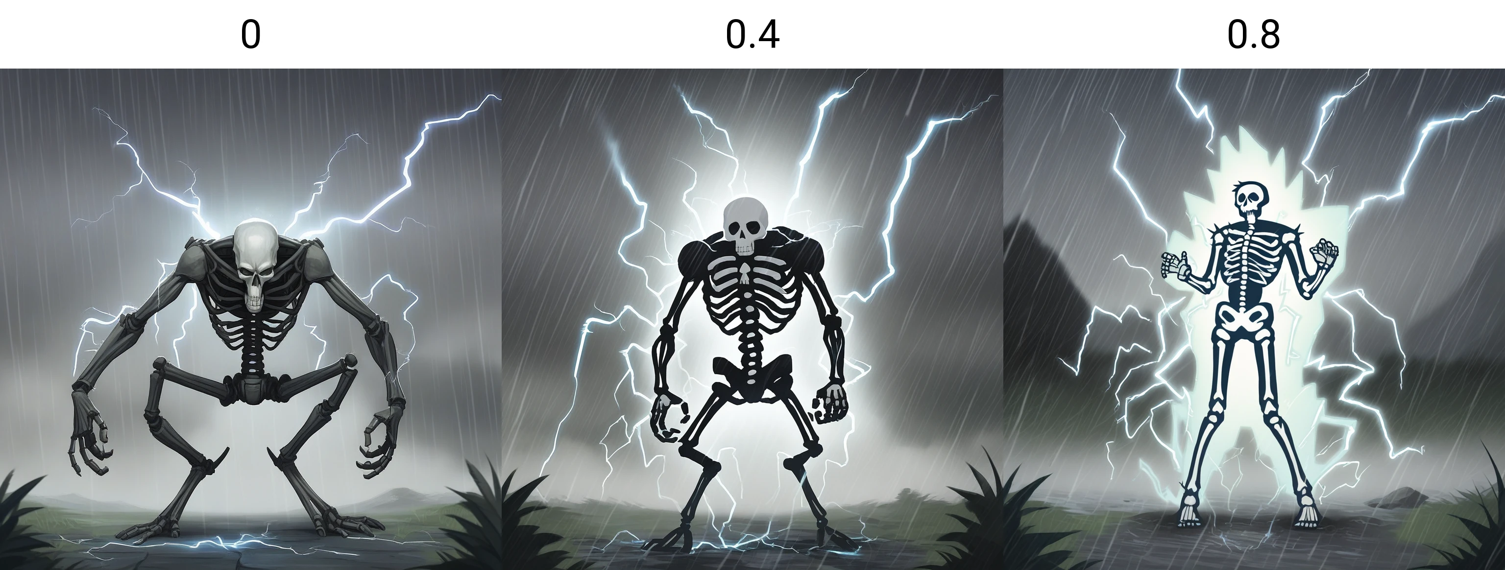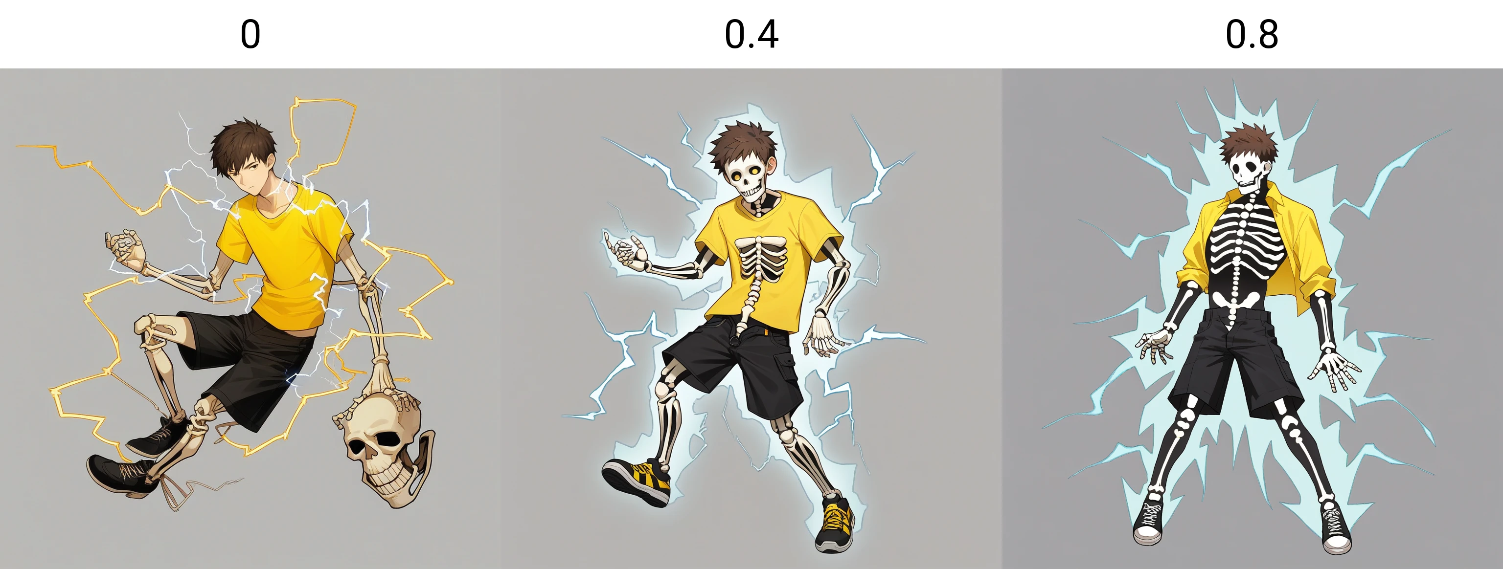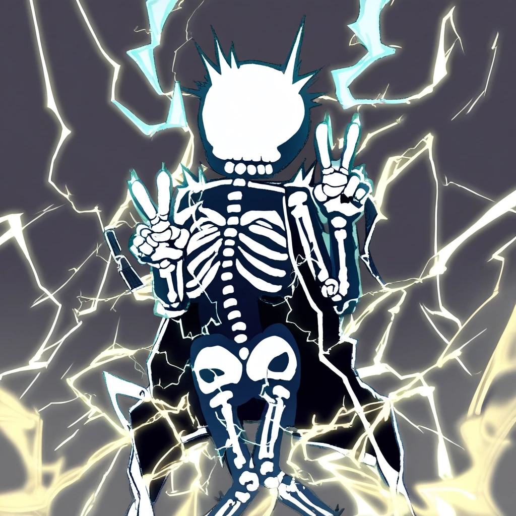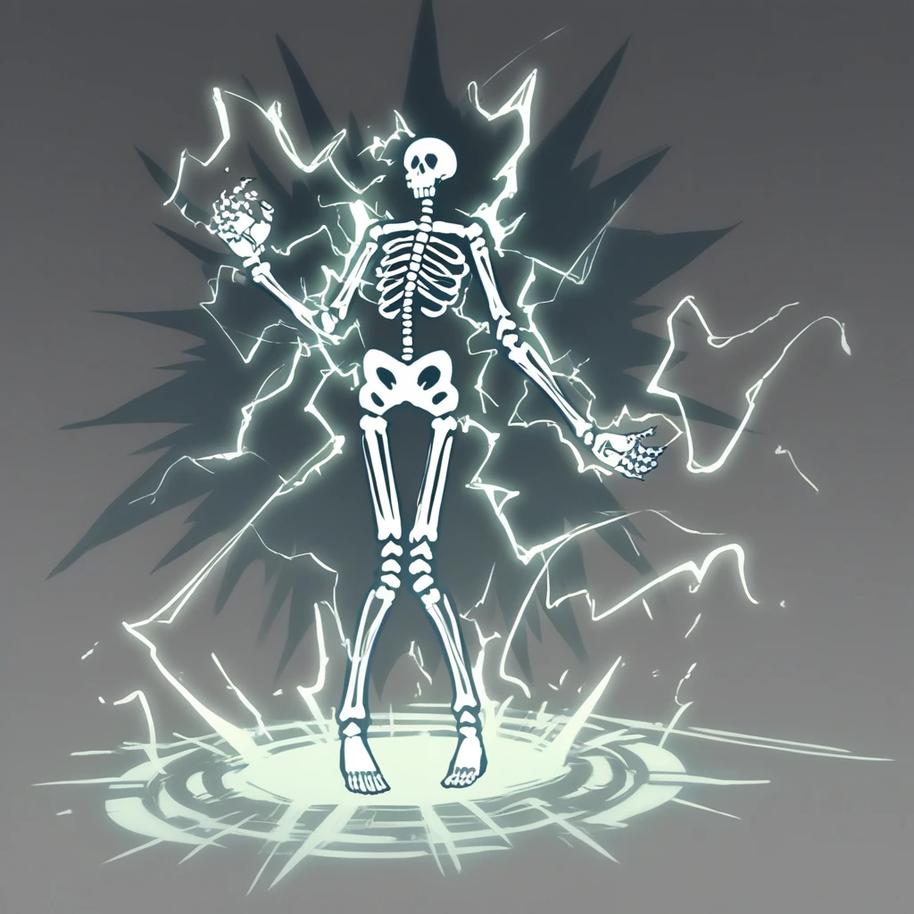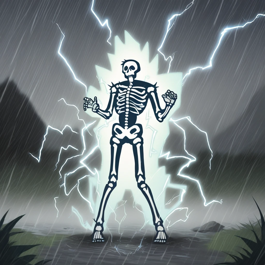 Lora that produces a cartoony electrocution effect, showing a characters skeleton