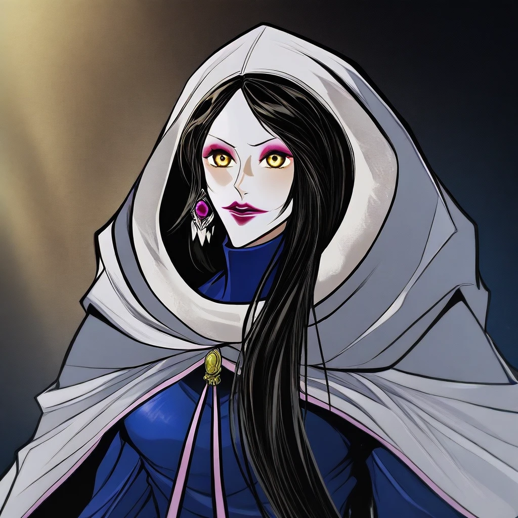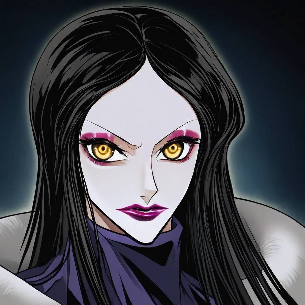 marinamh, long hair, black hair, yellow eyes, lipstick, black nails,nail polish , , earrings, jewelry,