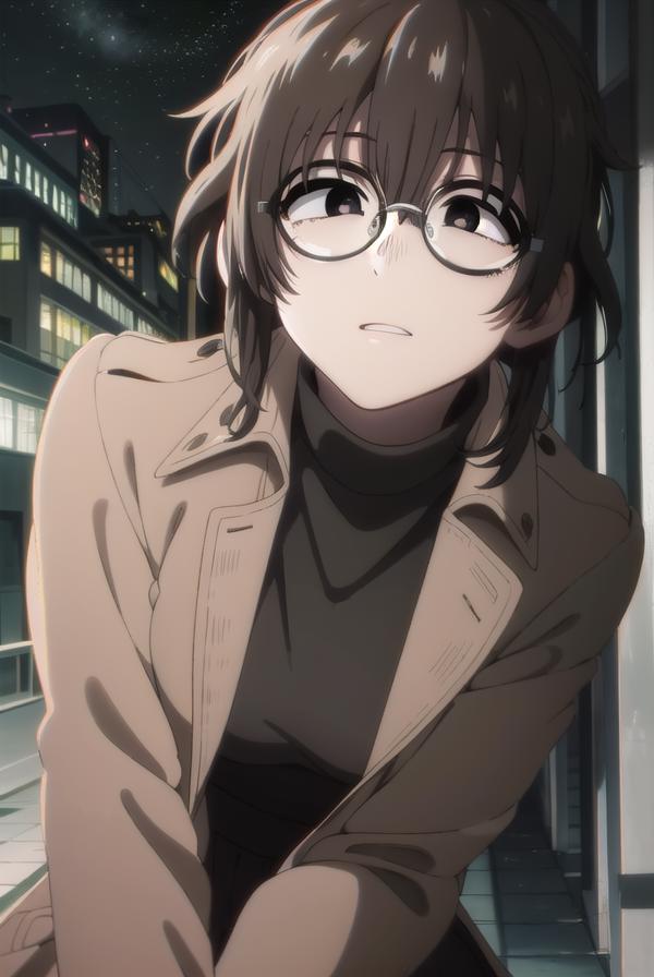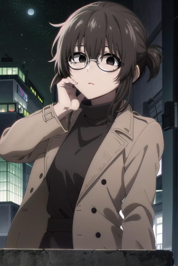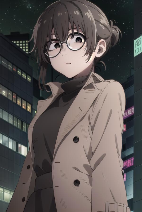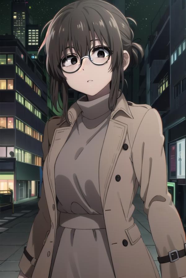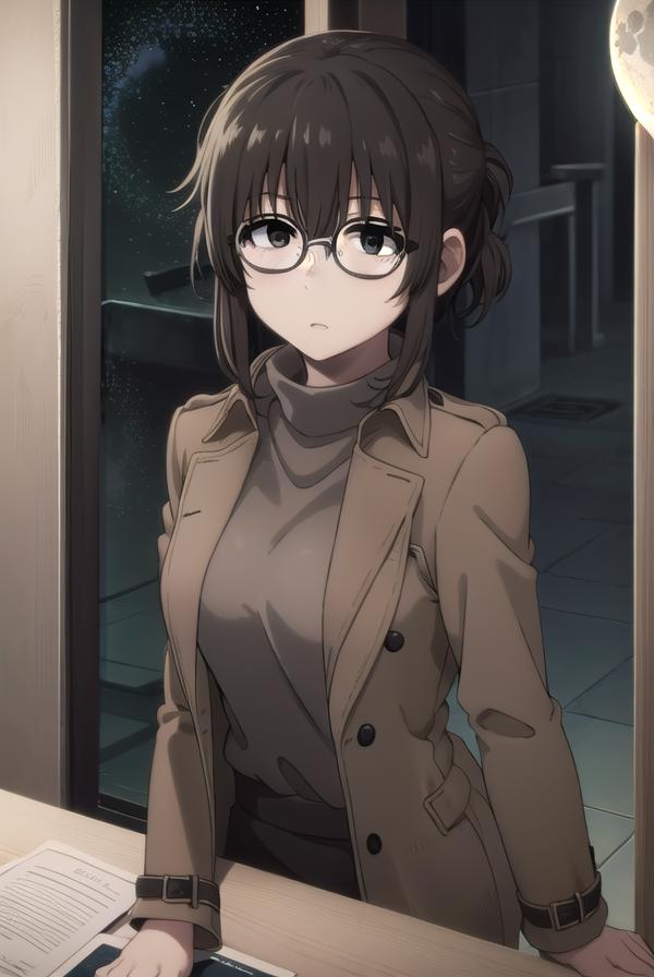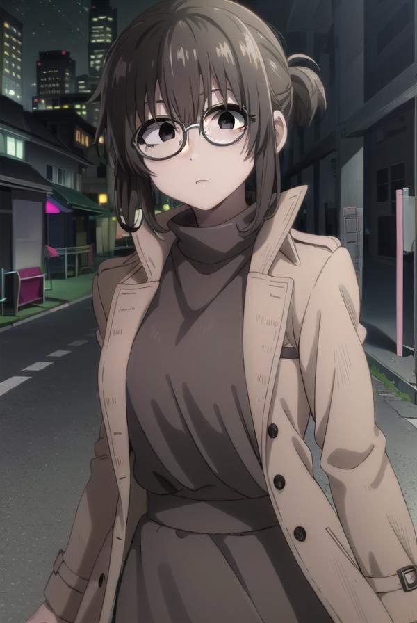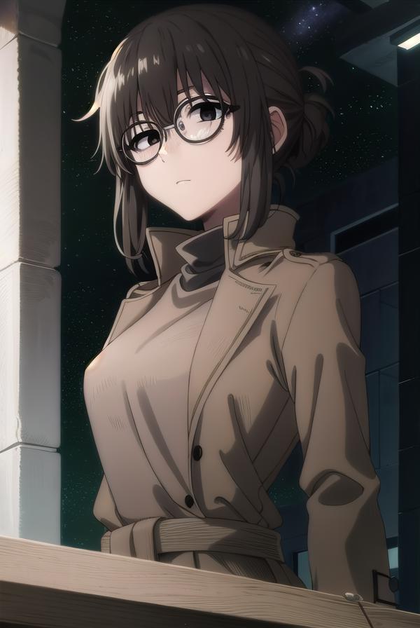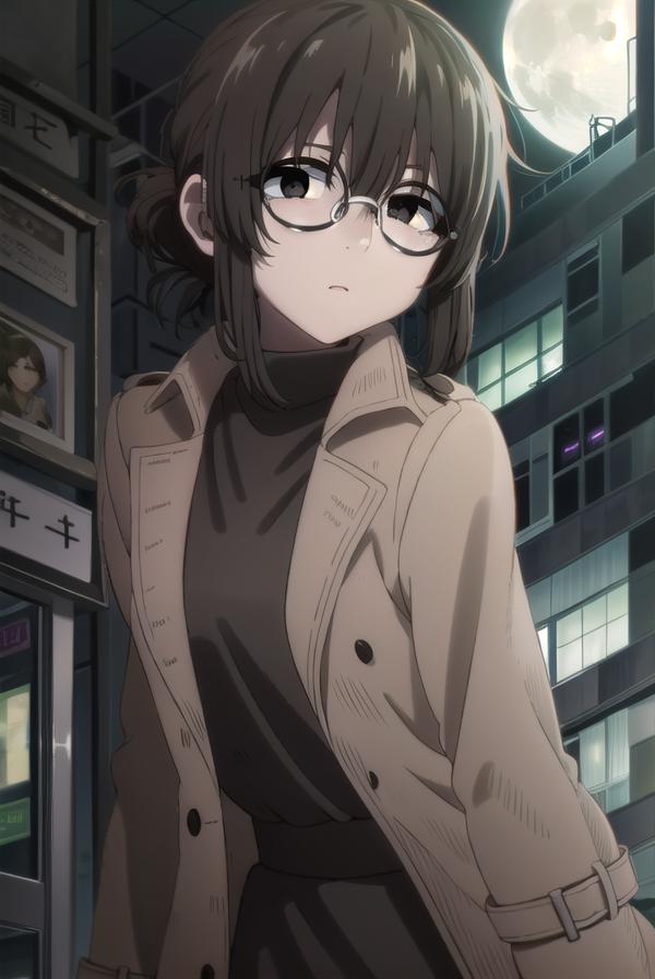 anko uguisu, short hair, brown hair, glasses, (black eyes:1.5),