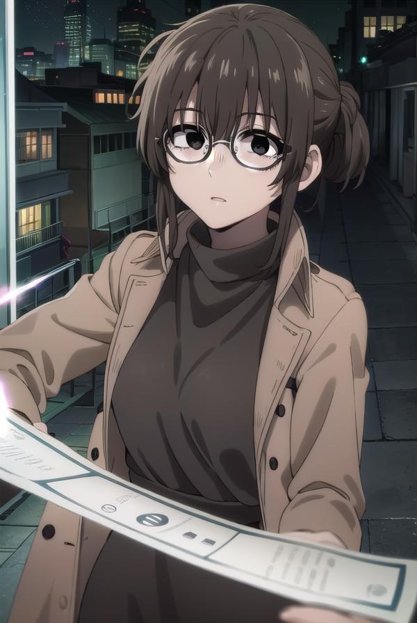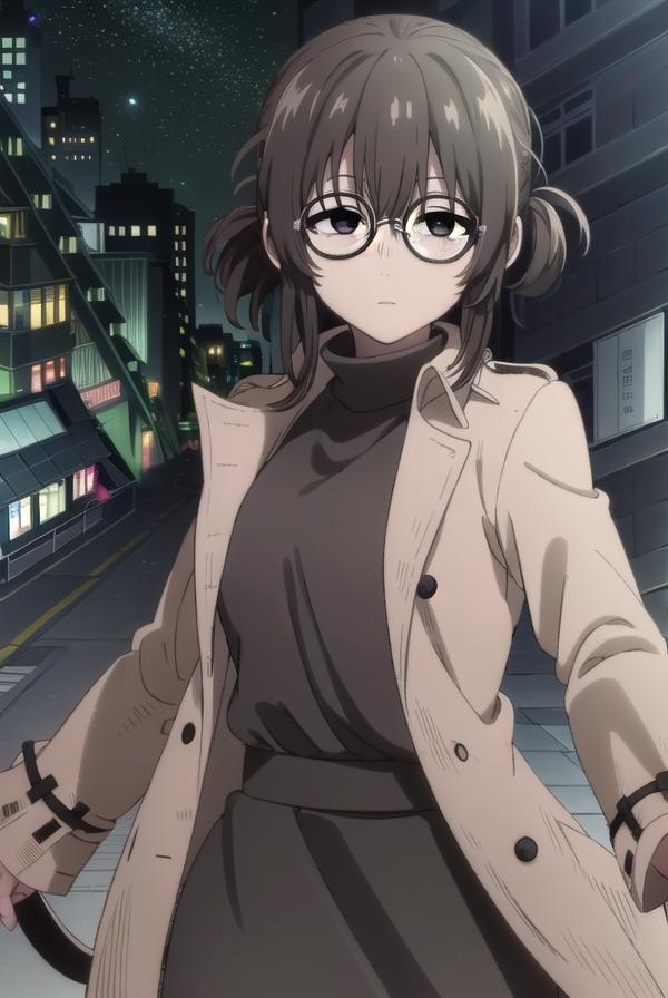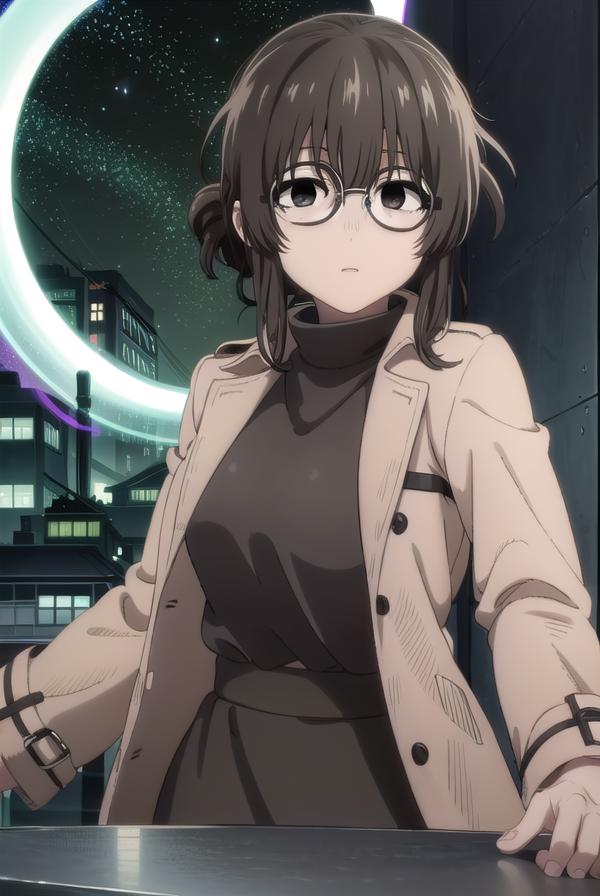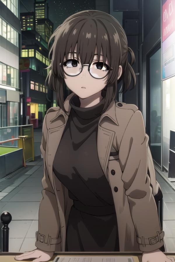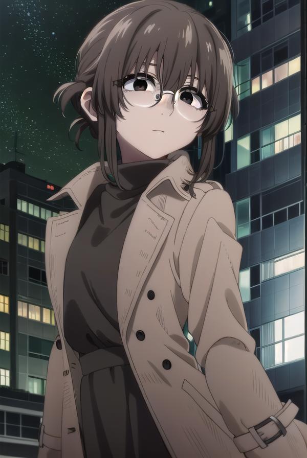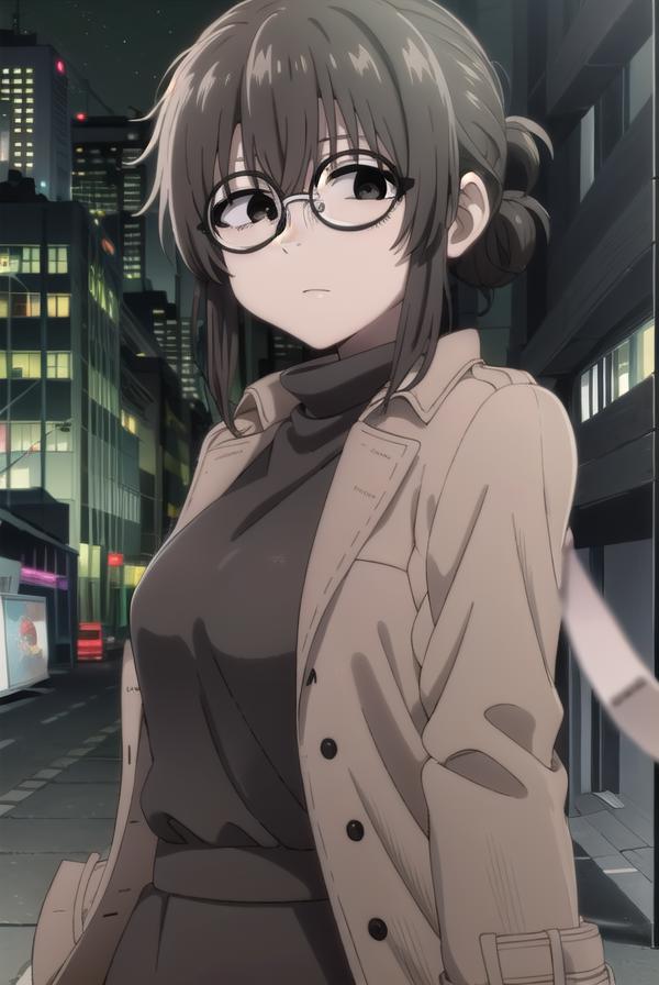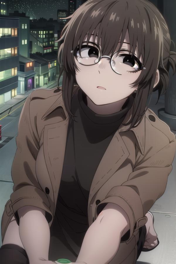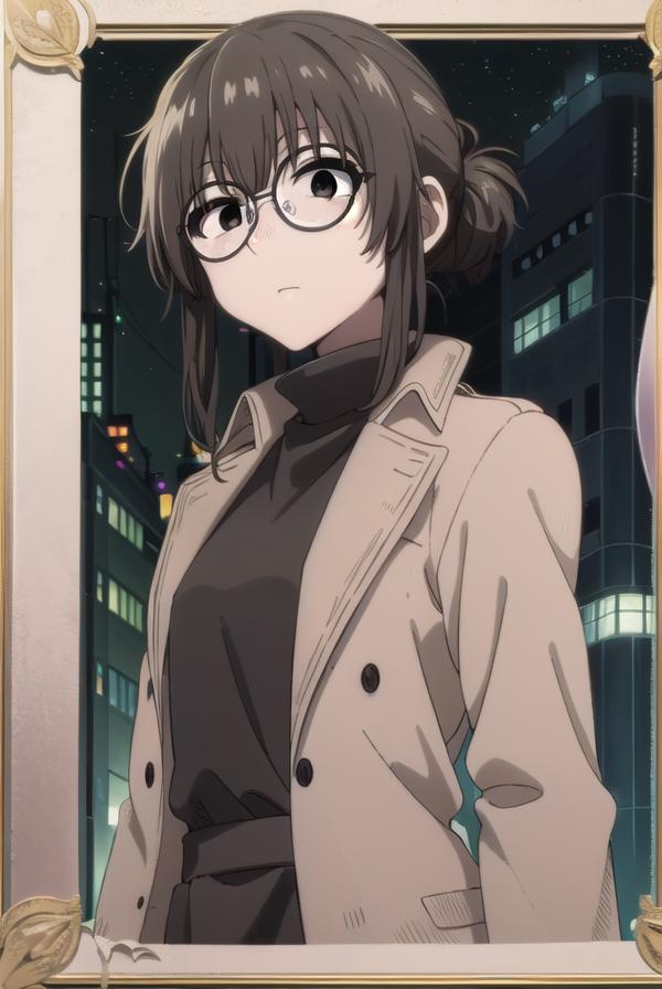 anko uguisu, short hair, brown hair, glasses, (black eyes:1.5),