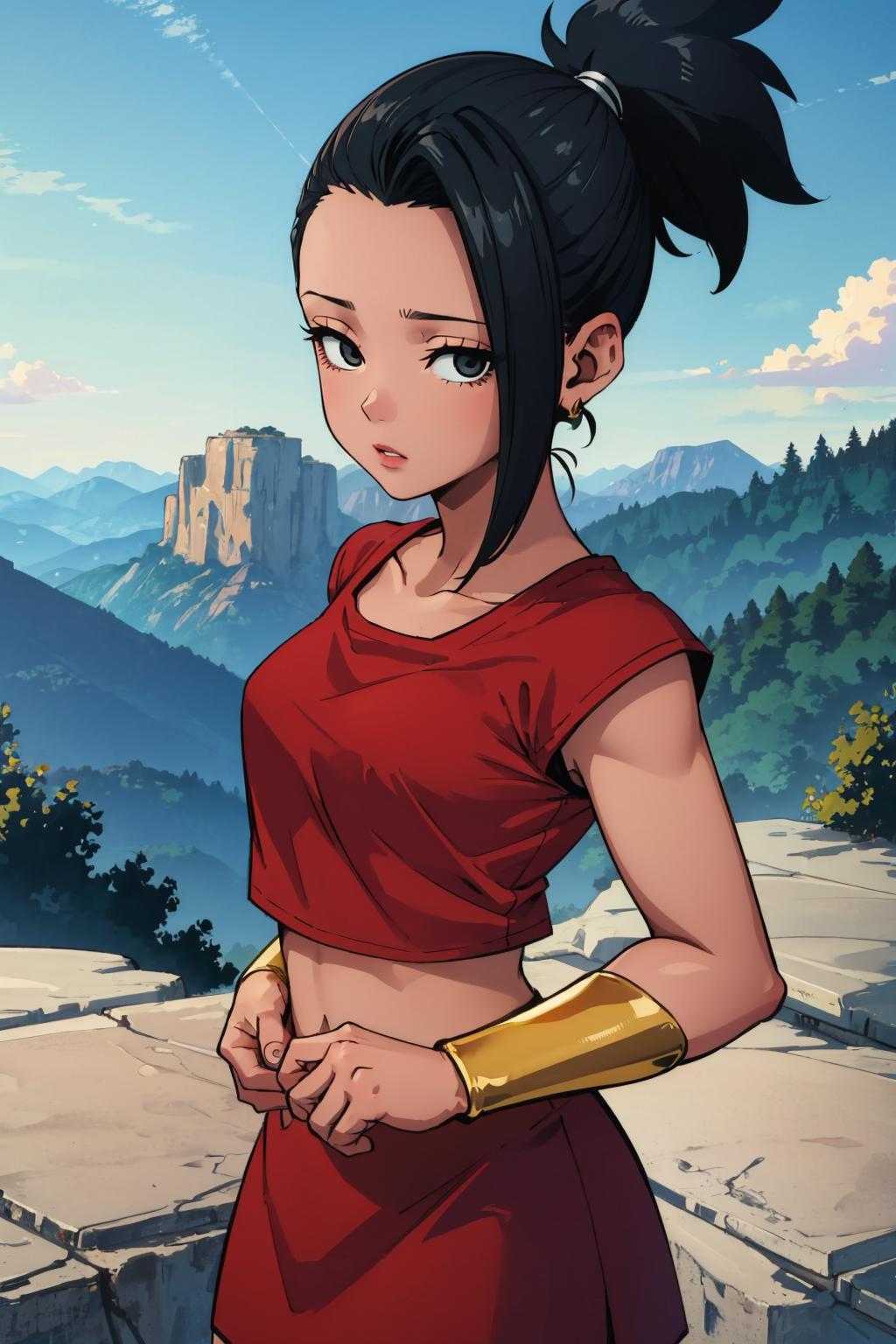 • Add "defKale, ponytail, crop top, bracer, red skirt, shorts under skirt, boots" for her base form.