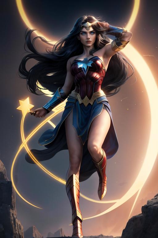 long_hair, black_hair, star_\(symbol\), circlet, blue_eyes, superhero