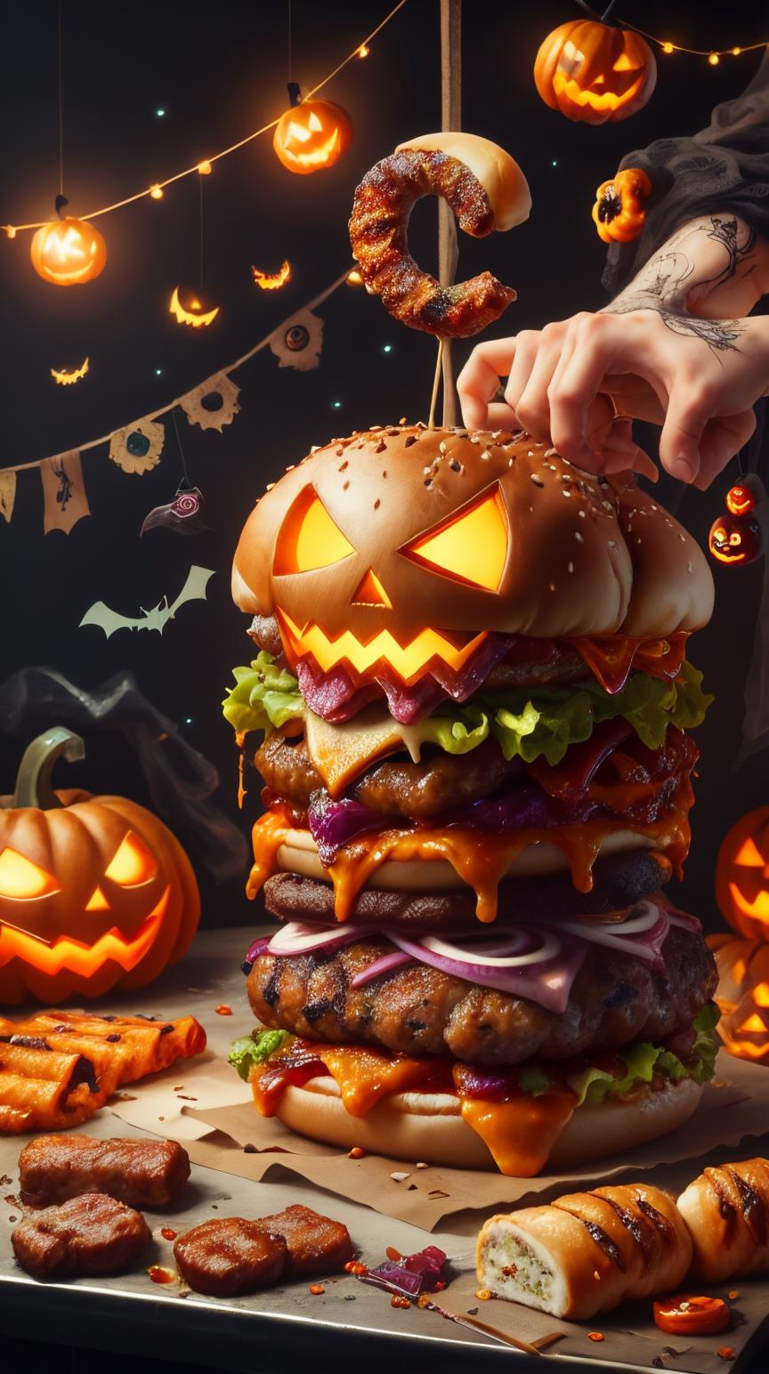 Example prompt: HalloweenGlowStyle hamburger <lora:HalloweenGlowStyle:1>