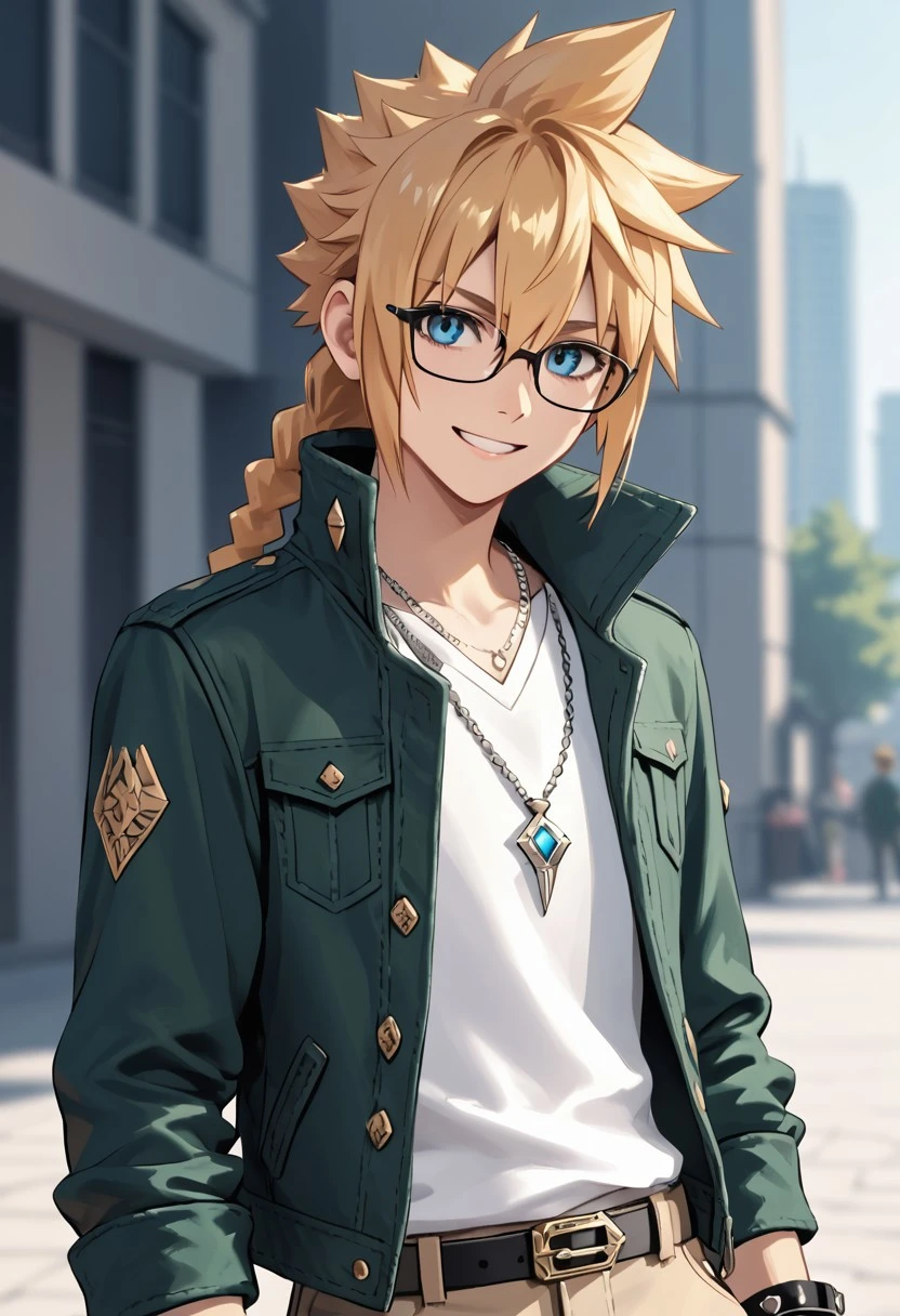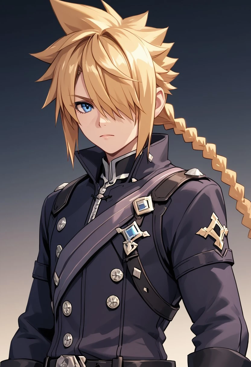 blonde hair,long hair,braided ponytail,spiked hair,single braids,blue eyes,