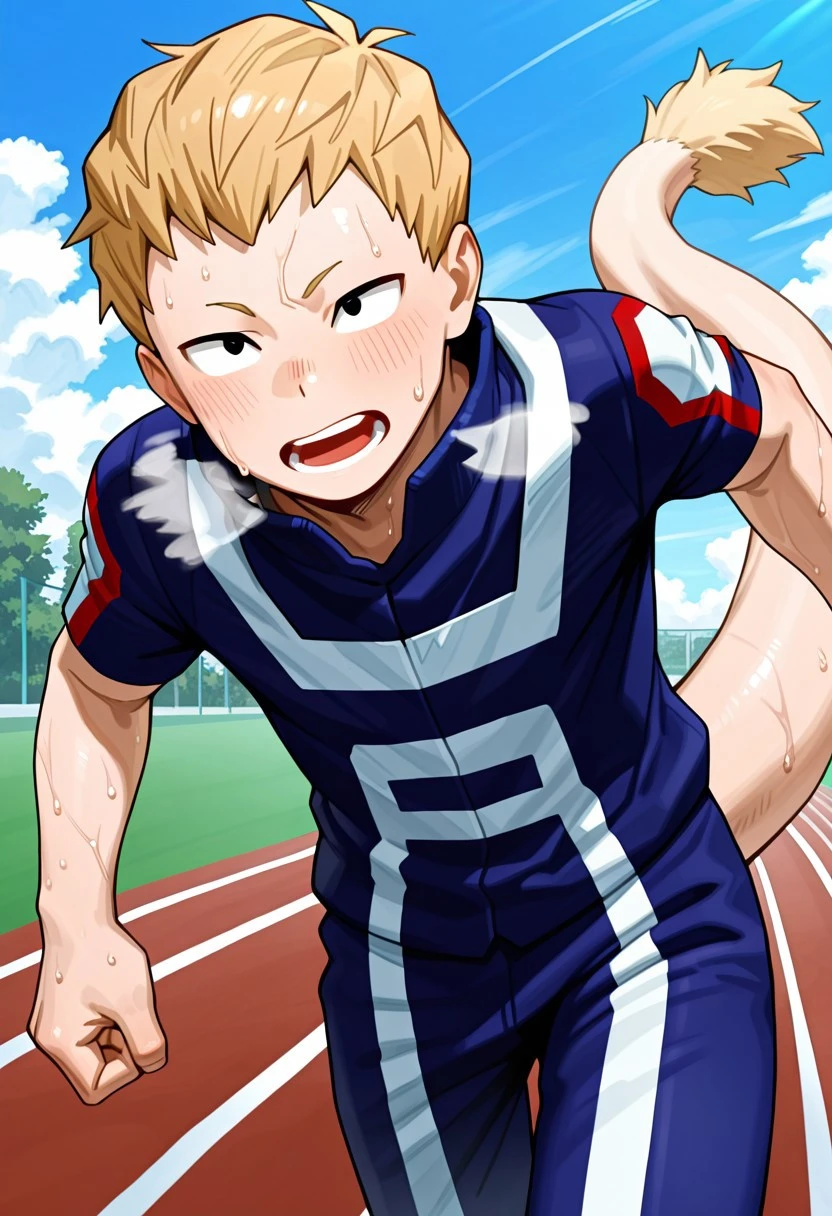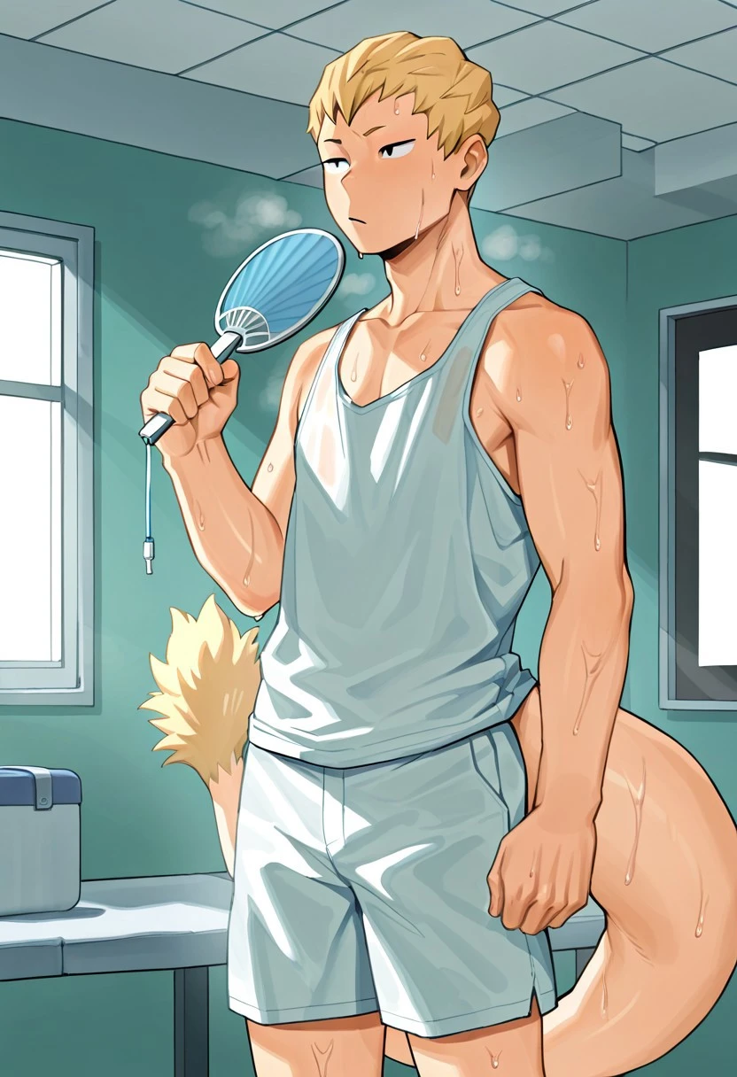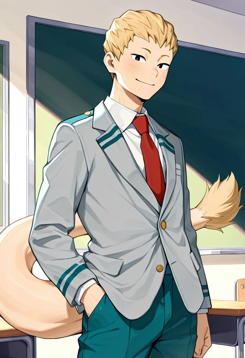 Mashirao_Ojiro, Blonde Hair, Black Eyes, Tail