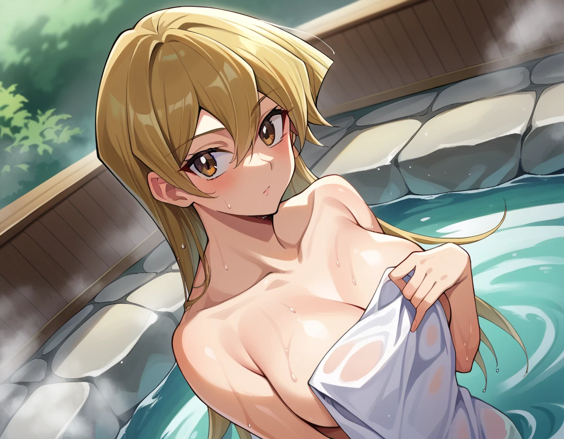 asuka tenjouin, blonde hair, brown eyes, hair between eyes, long hair, straight hair, very long hair,