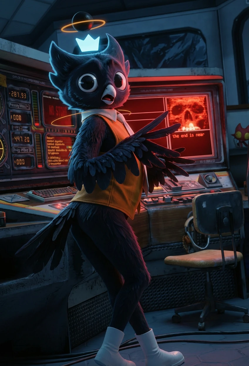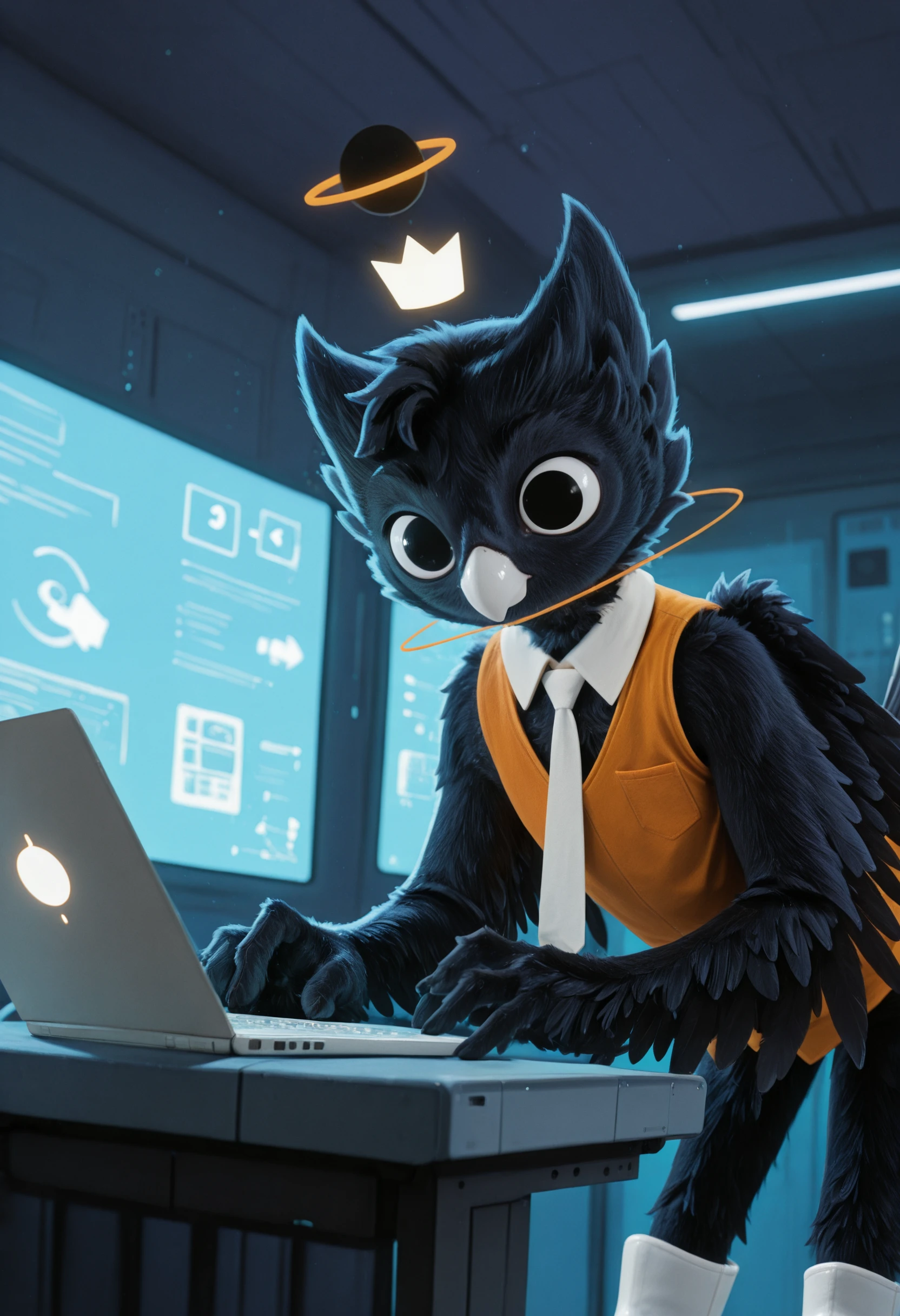 📝 Маскот STOLAS — это внутриигровой корпоративный маскот из Voices of the Void. Он представлен в виде стилизованной антропоморфной совы и используется исключительно как элемент визуальной айдентики STOLAS. Маскот не является персонажем, NPC или самостоятельной сущностью и появляется только в виде логотипов, постеров и корпоративных изображений, обозначая присутствие STOLAS в инфраструктуре и оформлении исследовательской станции.Trigger word / Триггер слово - st0las_votv