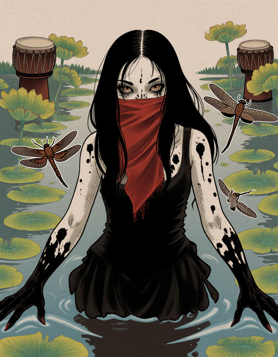 This LoRA generates illustrations in a storybook-meets-woodblock style, strongly leaning toward Asian myths and legends. It is trained on a mix of traditional asian art styles from Japan, China, and Vietnam, and more modern depictions of various mythological and legendary characters, spirits, and creatures. Subjects are depicted with clean outlines, flat expressive shading, and balanced, muted color palettes reminiscent of the traditional Japanese and East Asian woodblock prints, and backgrounds often feature natural or symbolic elements — moons, mountains, temples, water, or spirits — creating the feel of mythic scenes frozen in time.