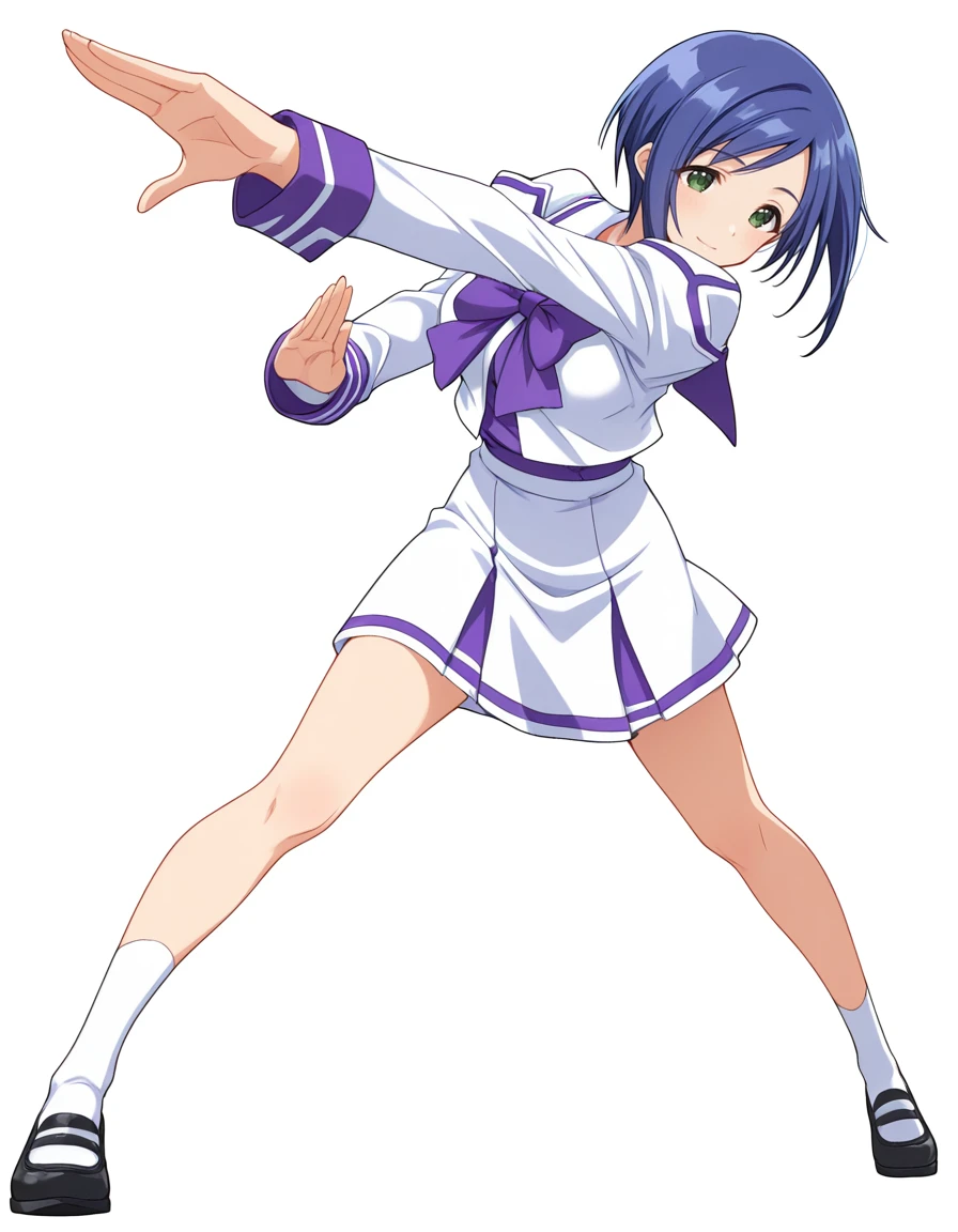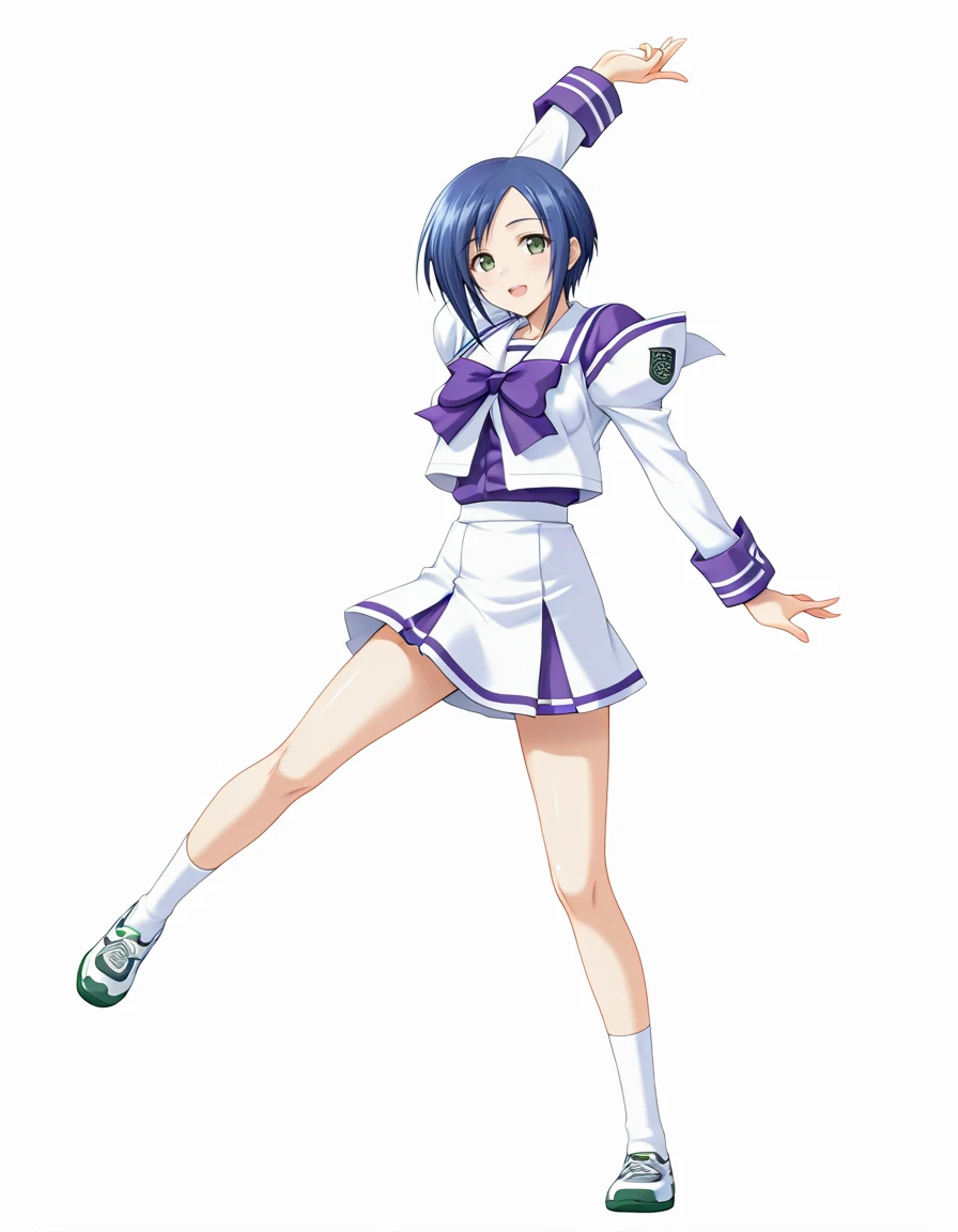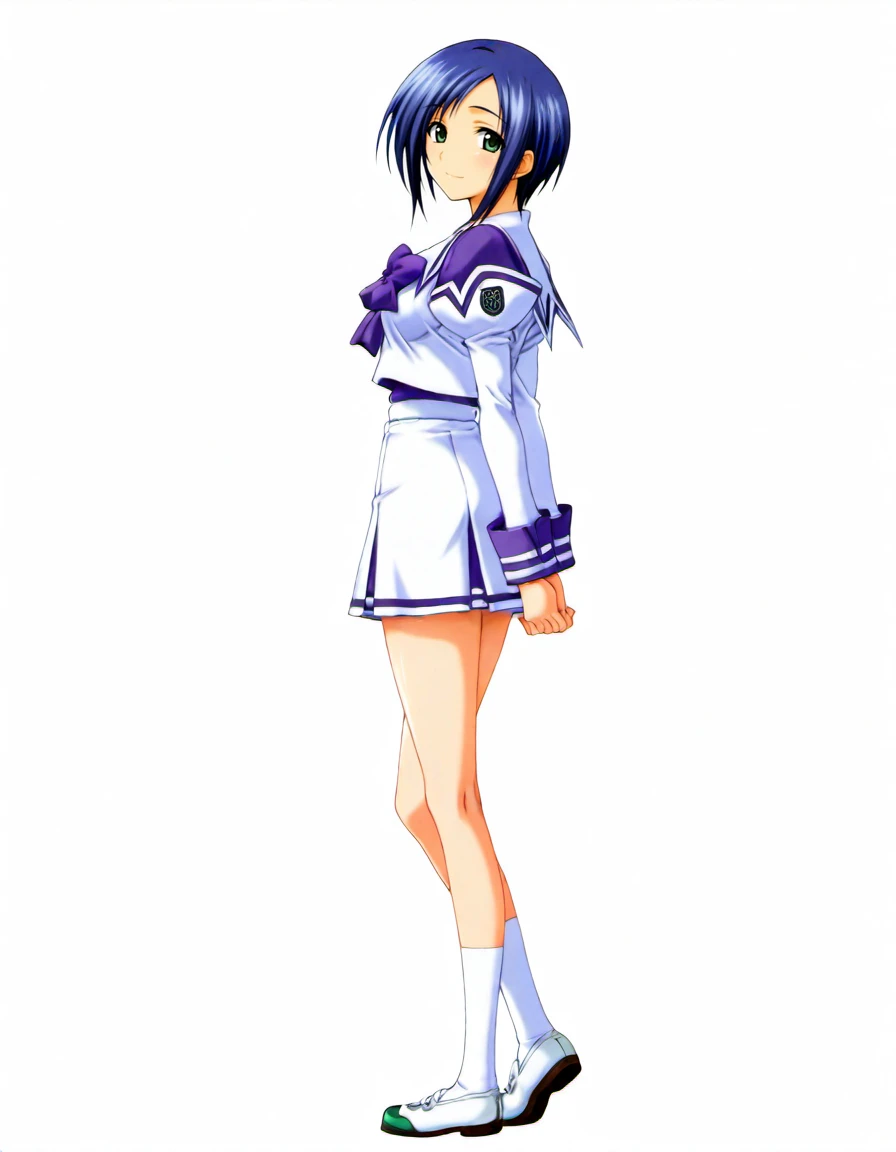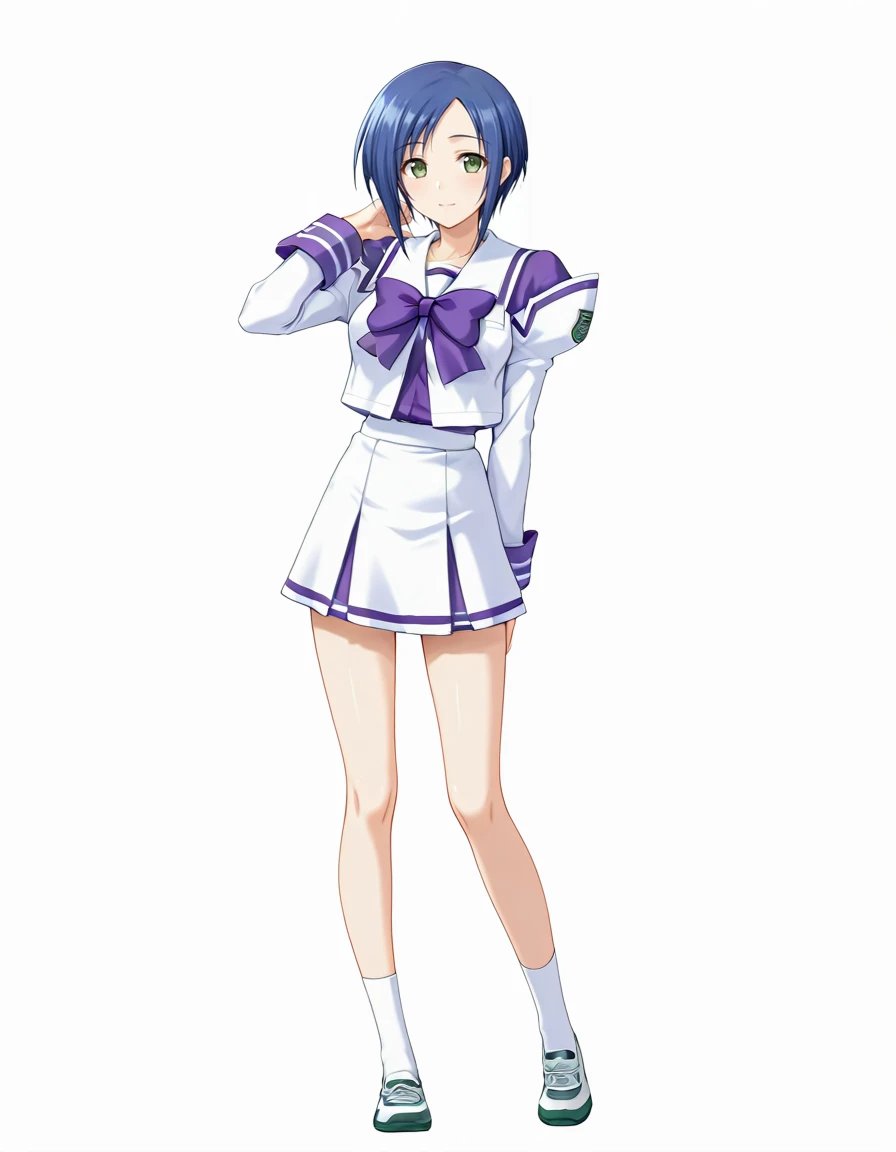 kashiwagi haruko, 1girl, solo, blue hair, green eyes, school uniform, long sleeves,