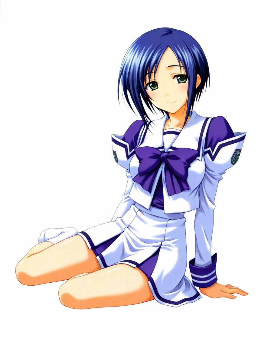 kashiwagi haruko, blue hair, green eyes, school uniform, long sleeves,