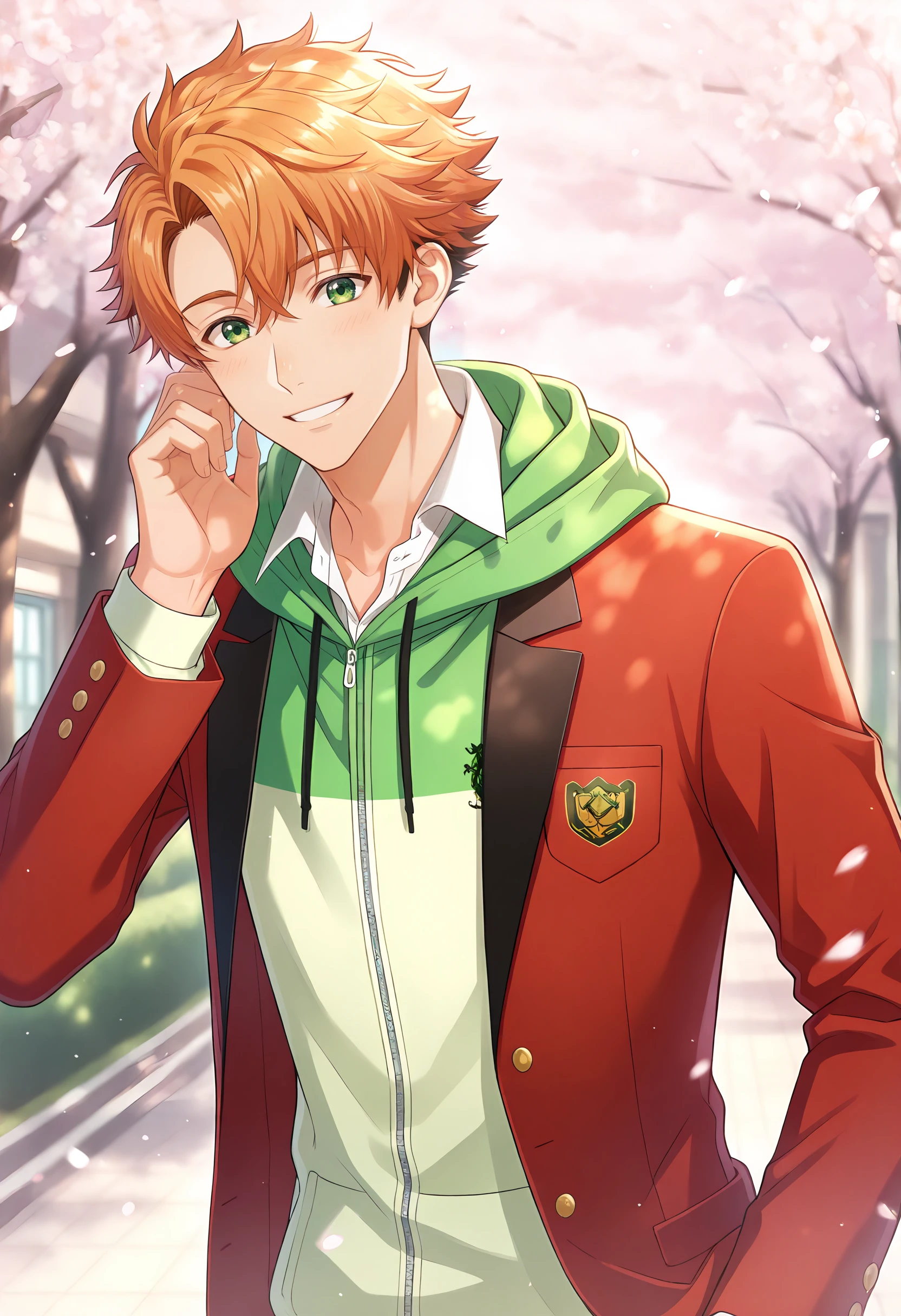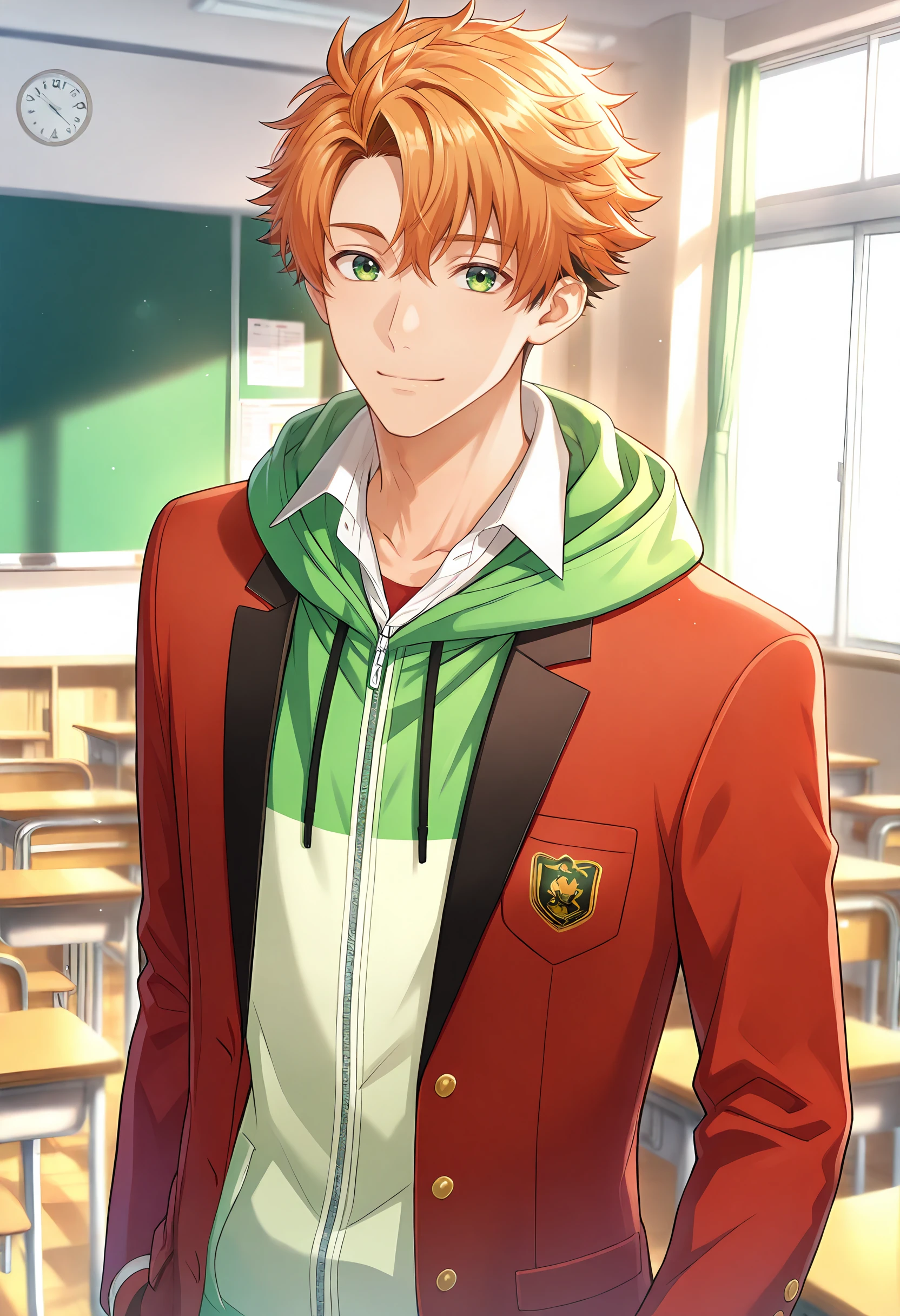 For School uniform: takutoschool, red blazer, hood, green hoodie,