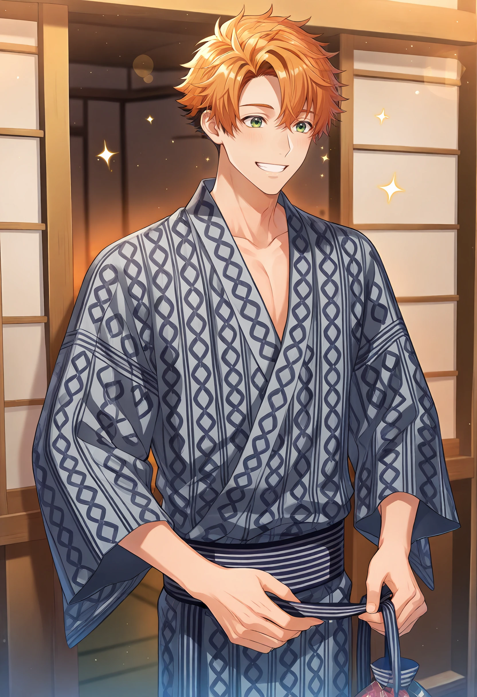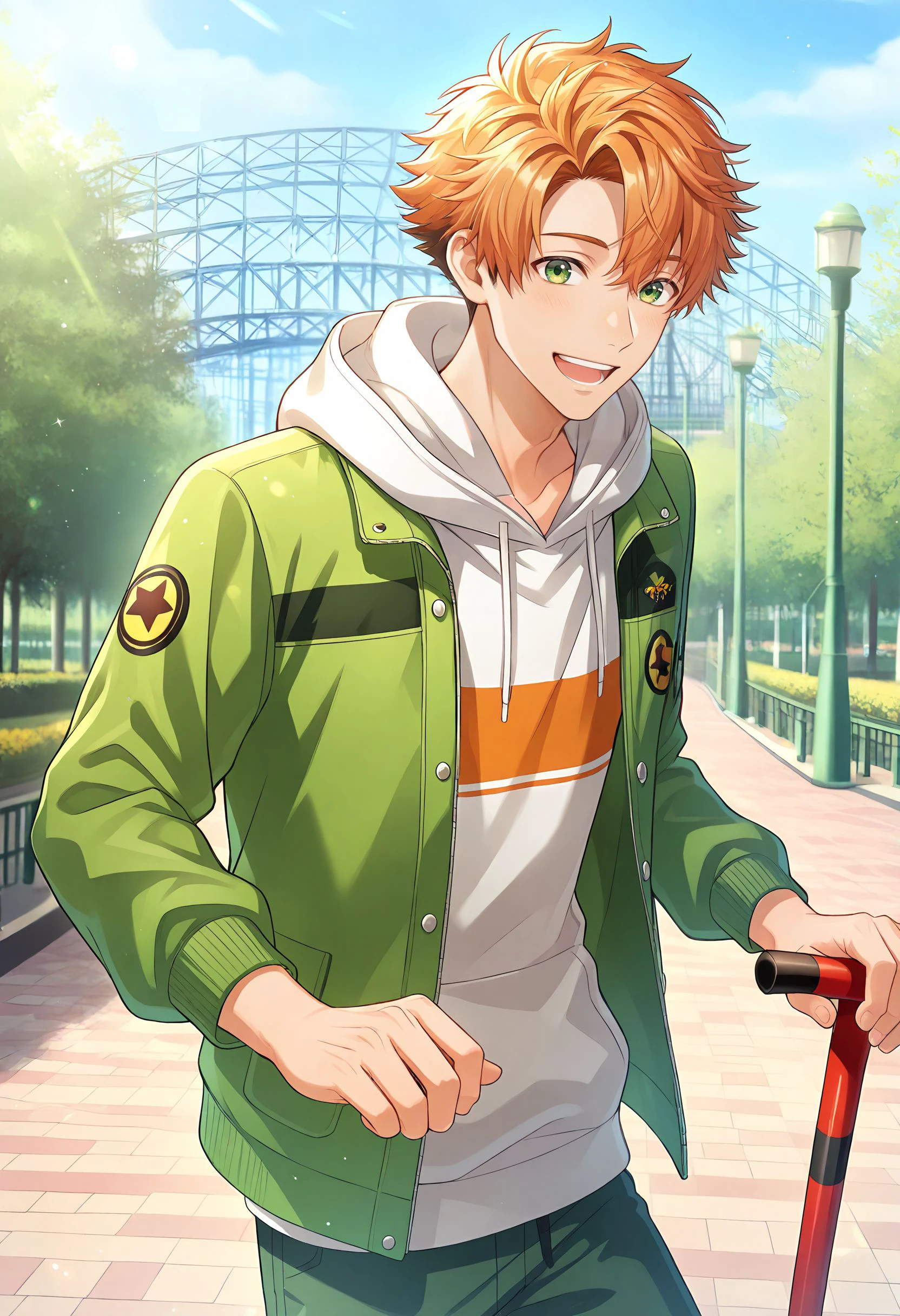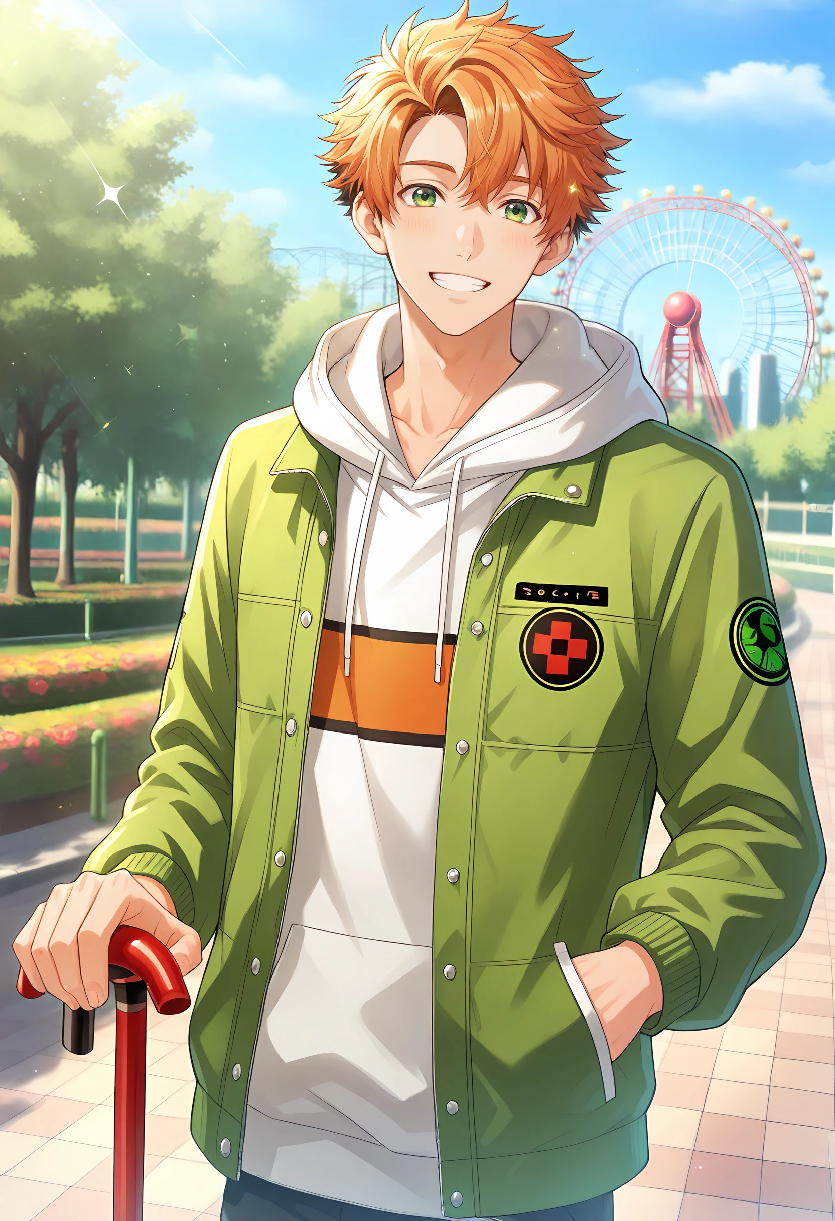 Activation tags: takuto, green eyes, orange hair,