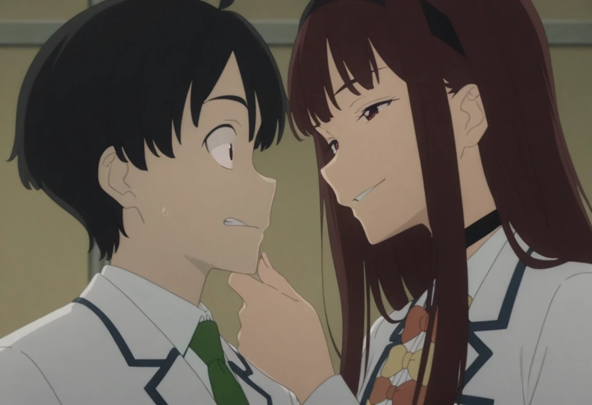 tiara basori, short hair, black hair, single hairbun, blue eyes,