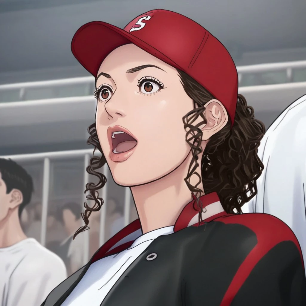_ayak0_, 1girl, hat, baseball cap, brown eyes, brown hair, shirt, twin braids, jacket, white shirt, solo