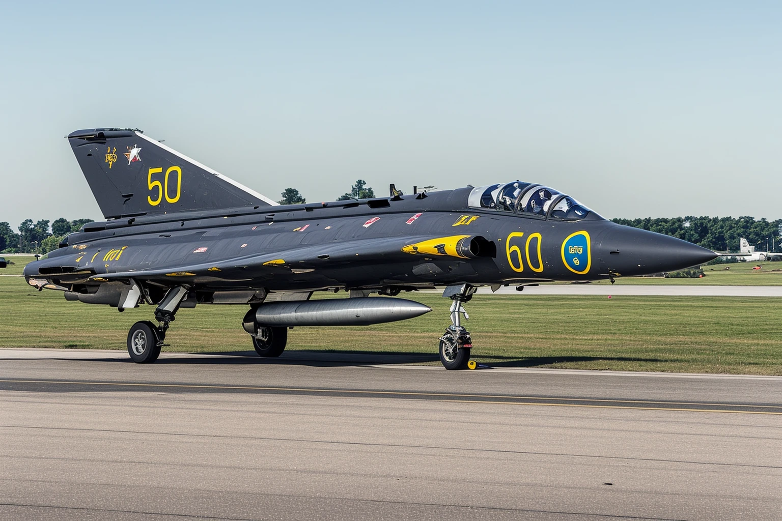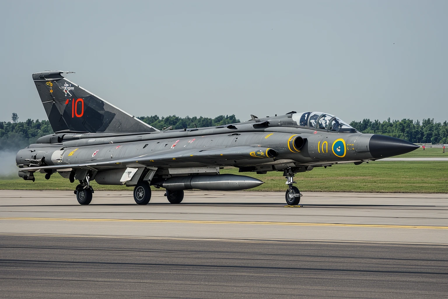 A prototype lora for a SAABs Draken, a military aircraft from the early to middle cold war period