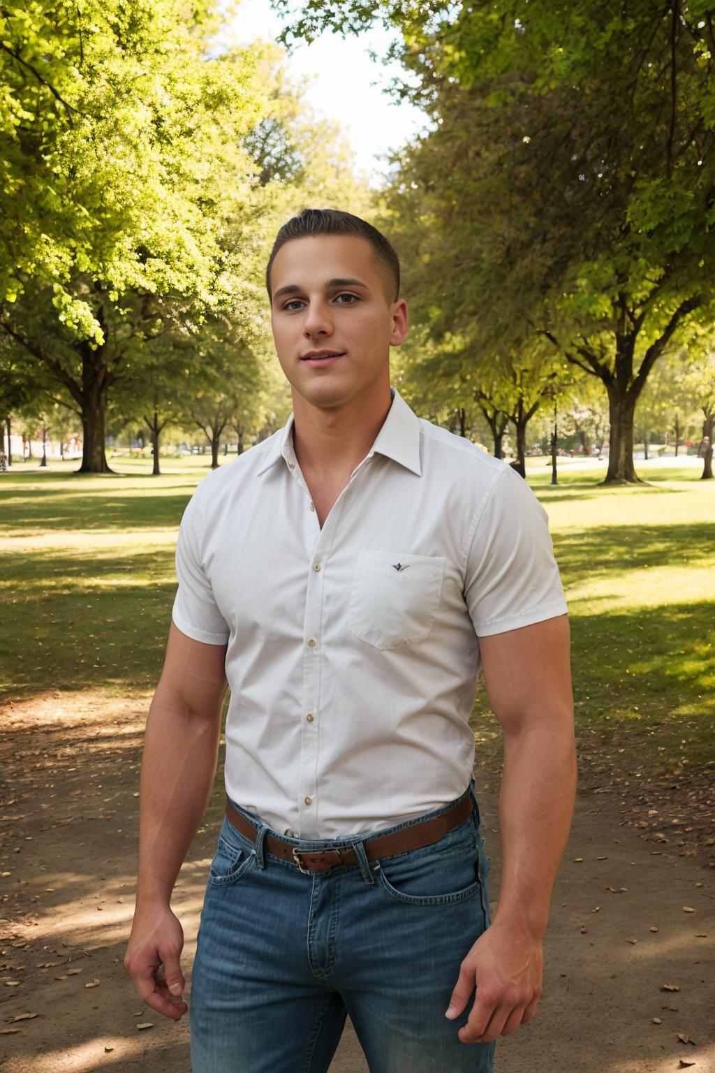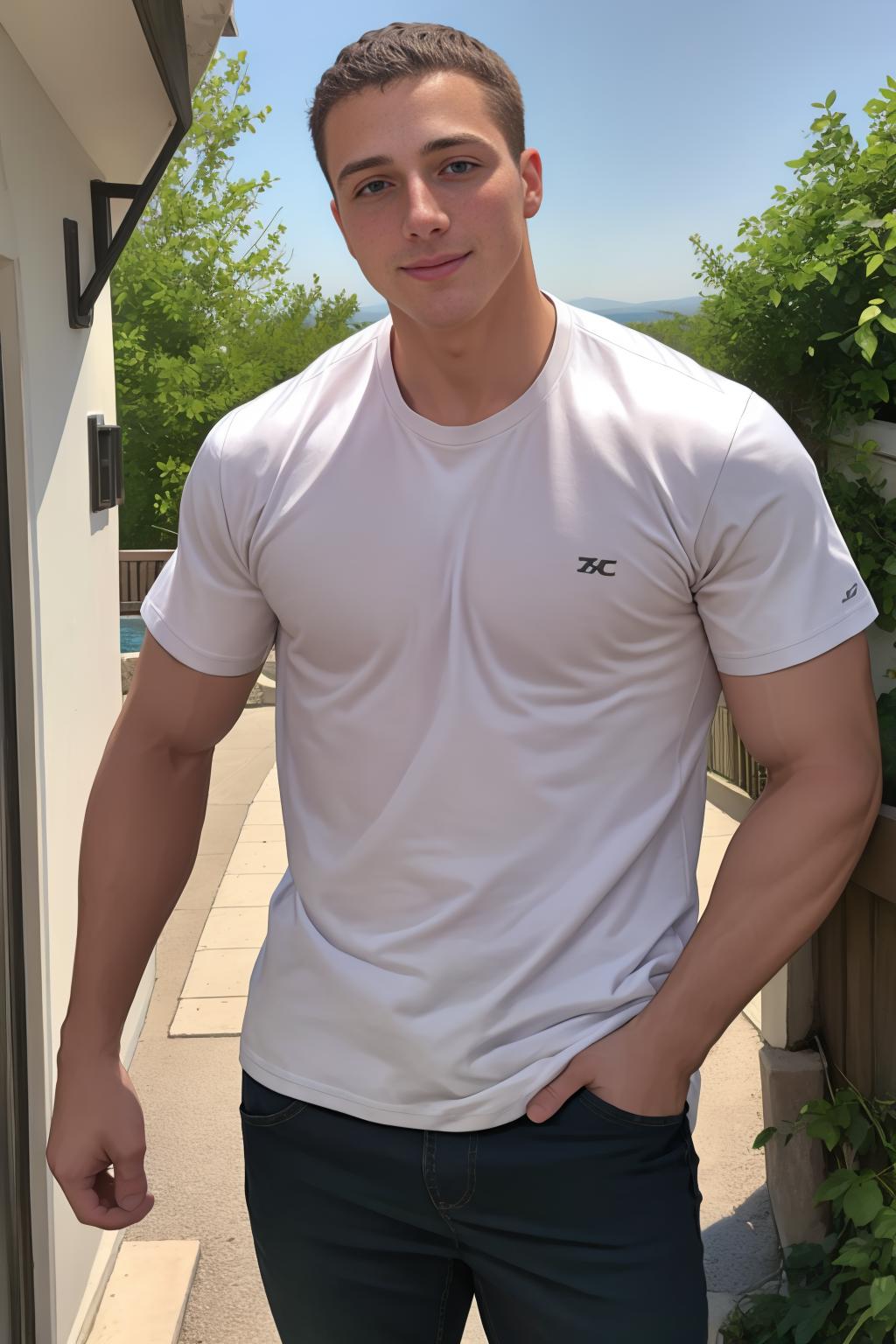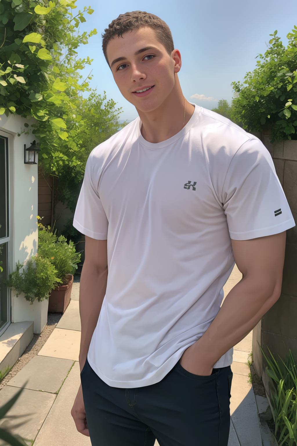 Works well between 0.7 and 0.8. The training dataset contains NSFW imagery from his time at Sean Cody. There were only 18 photos in the training dataset.