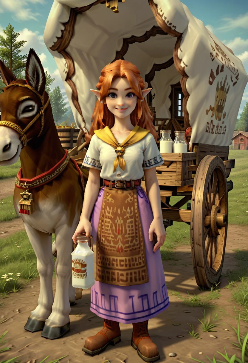 cremia, 1girl, solo, pointy ears, body, long hair, belt, brown_hair, boots