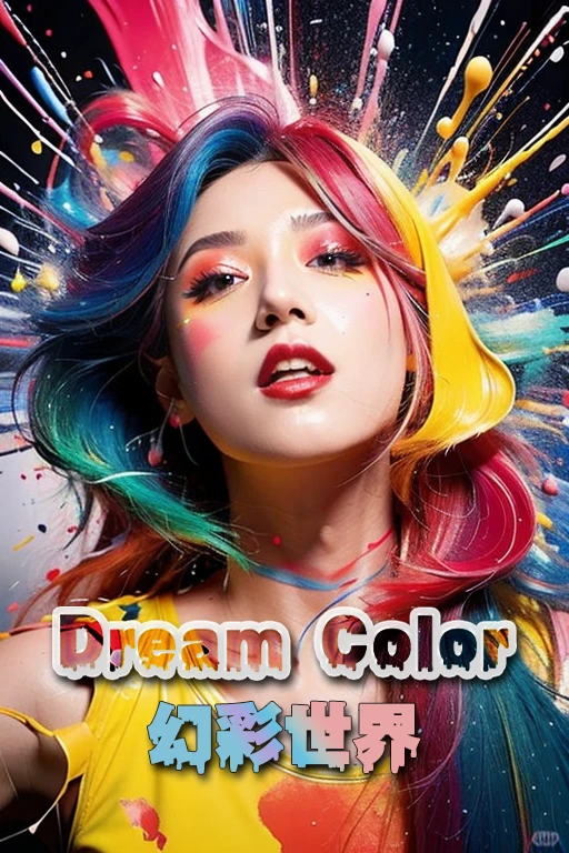 推荐提示词: Dream color,paint splatter,multicolored hair,splashing,colorful