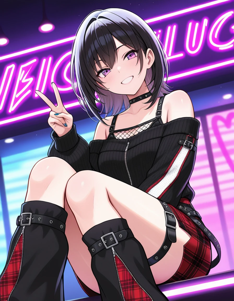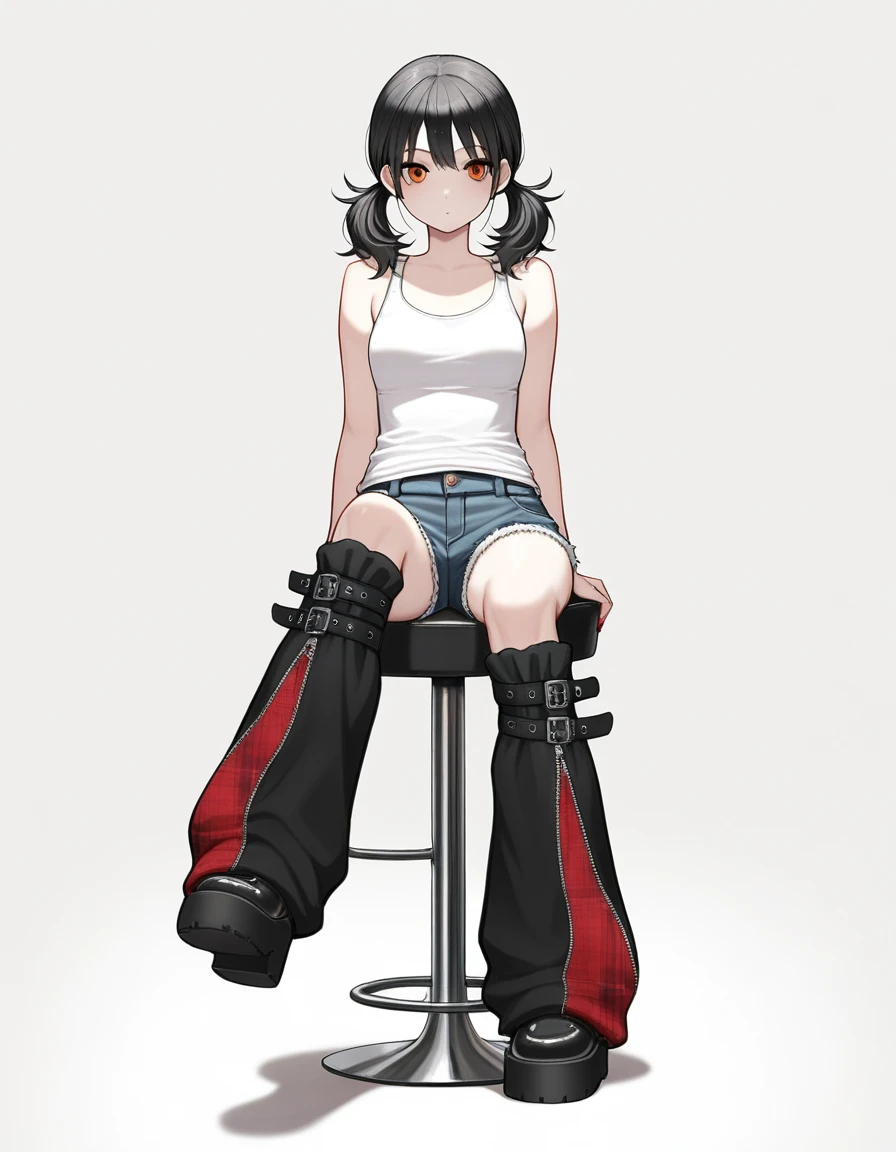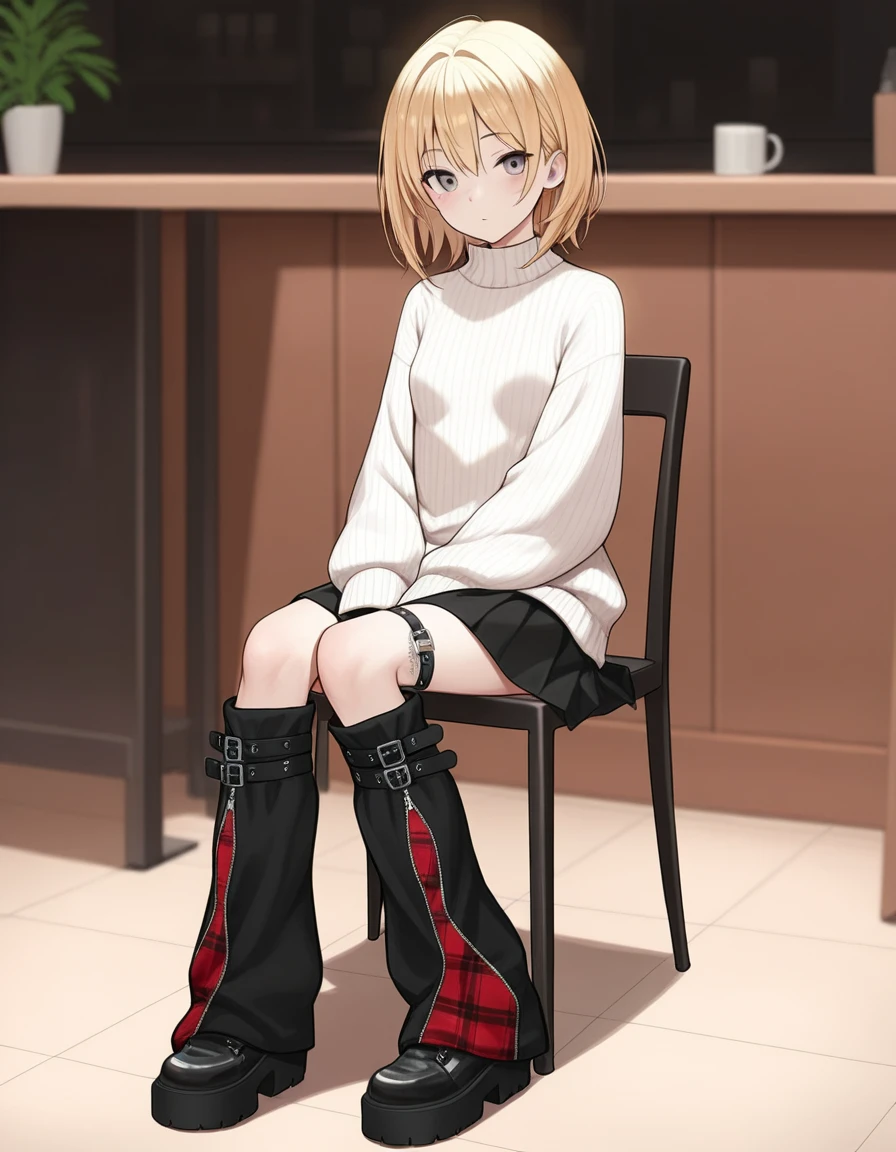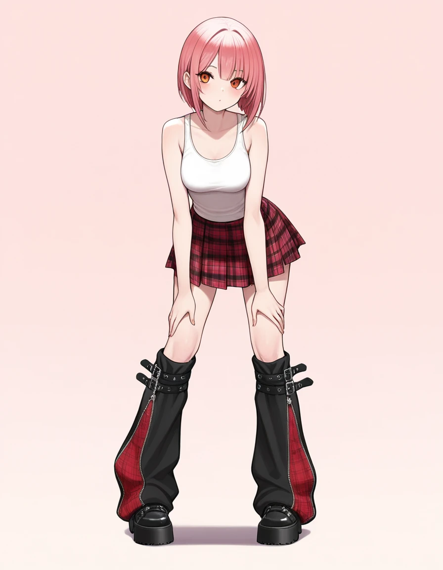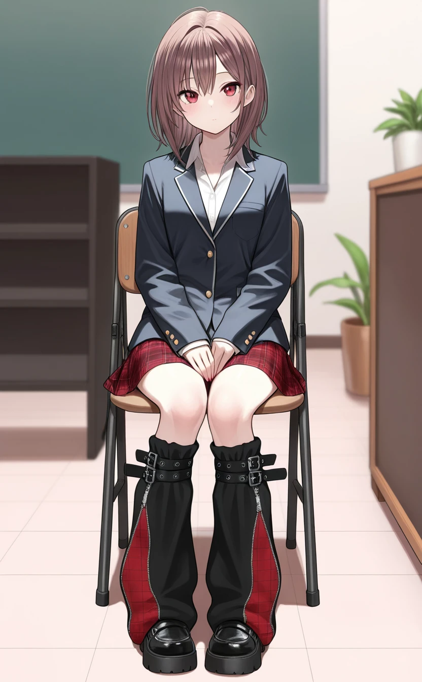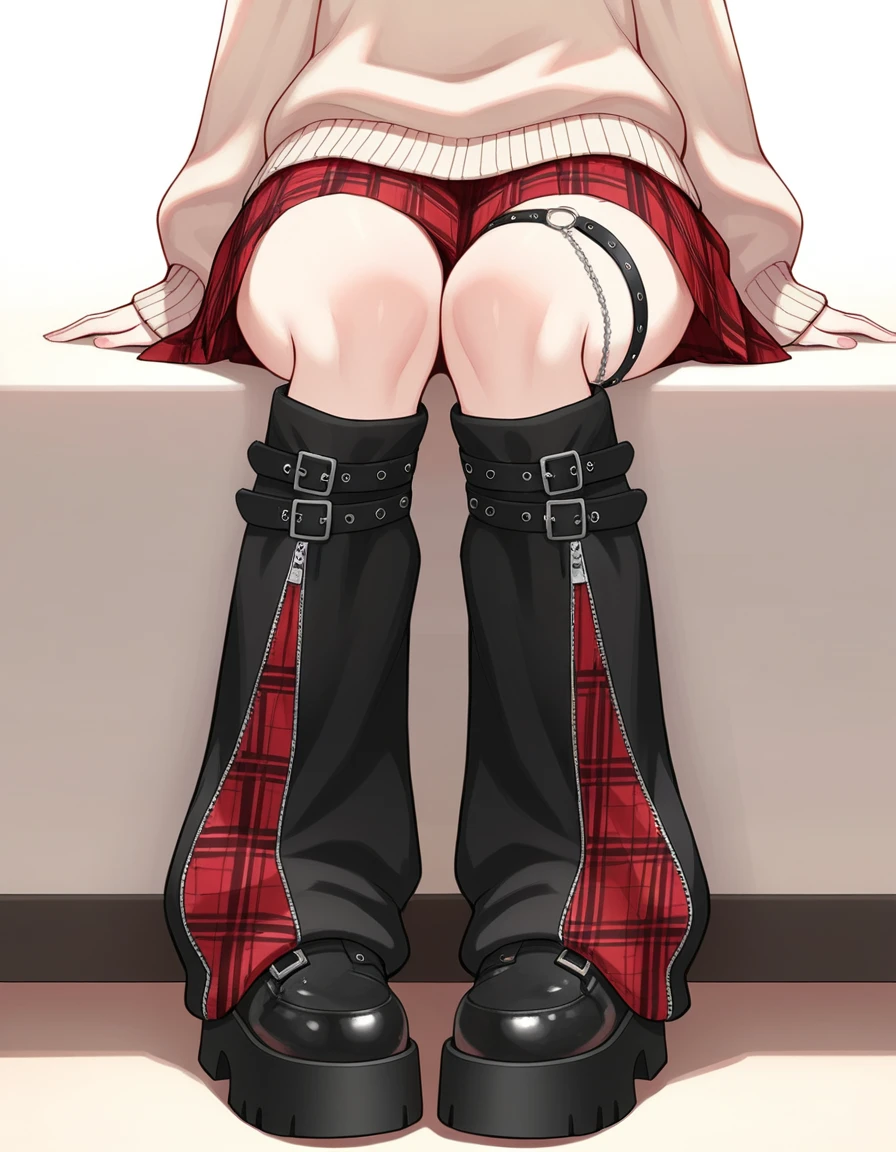 Leg warmers with belt, black and red plaid.