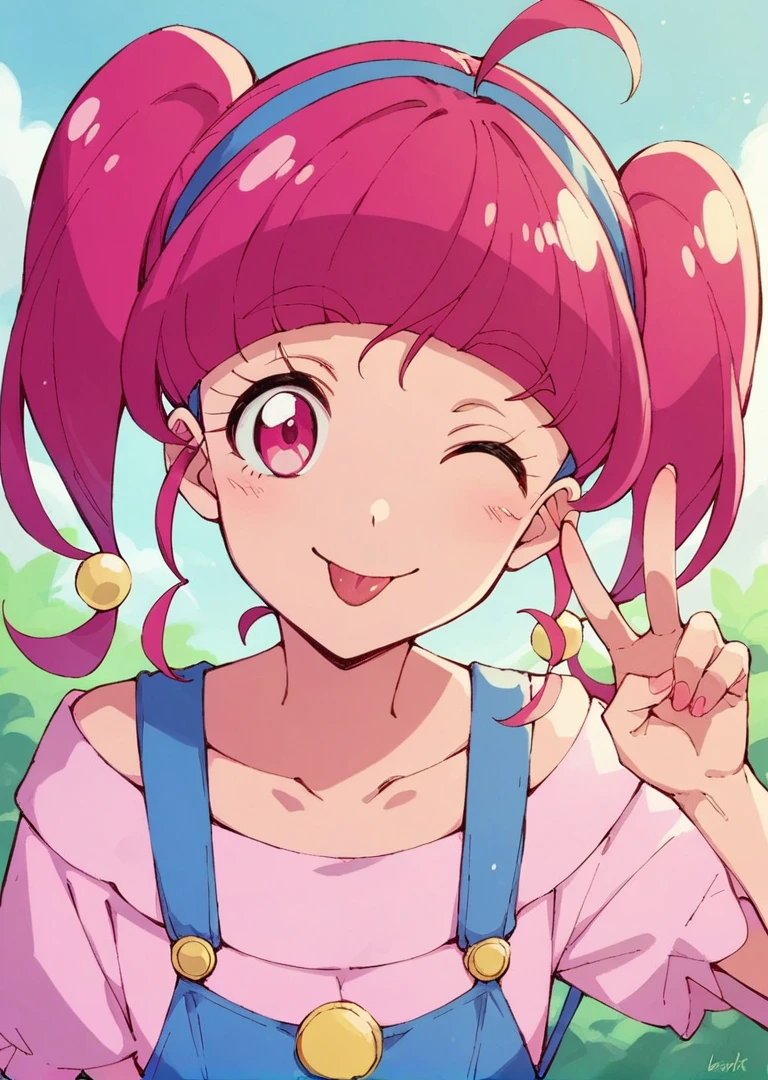 hoshina hikaru, pink eyes, pink hair, twintails, hair ornament, hairband