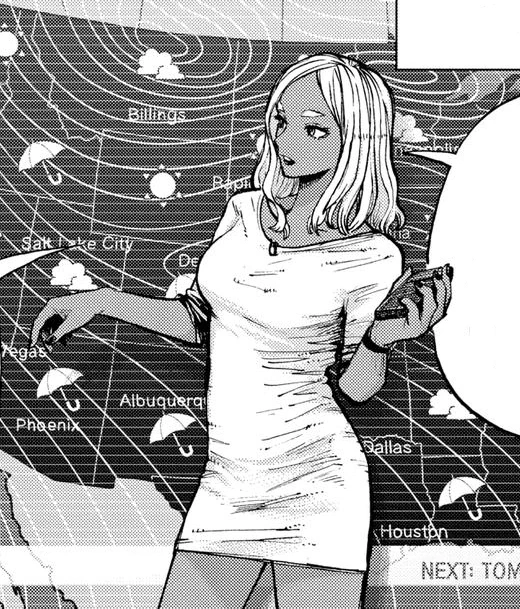 meryl hope, blue eyes, blonde hair, medium hair, dark-skinned female,
