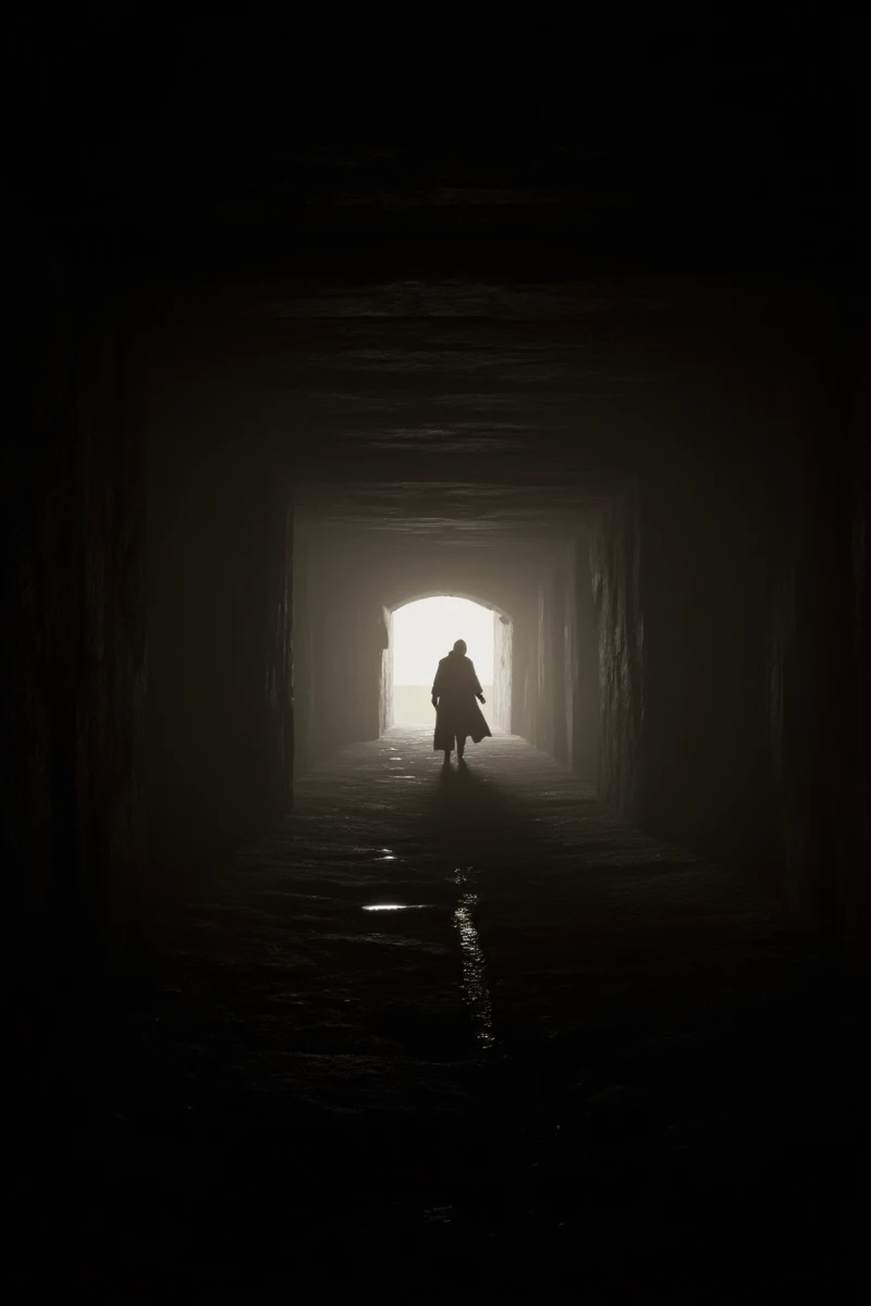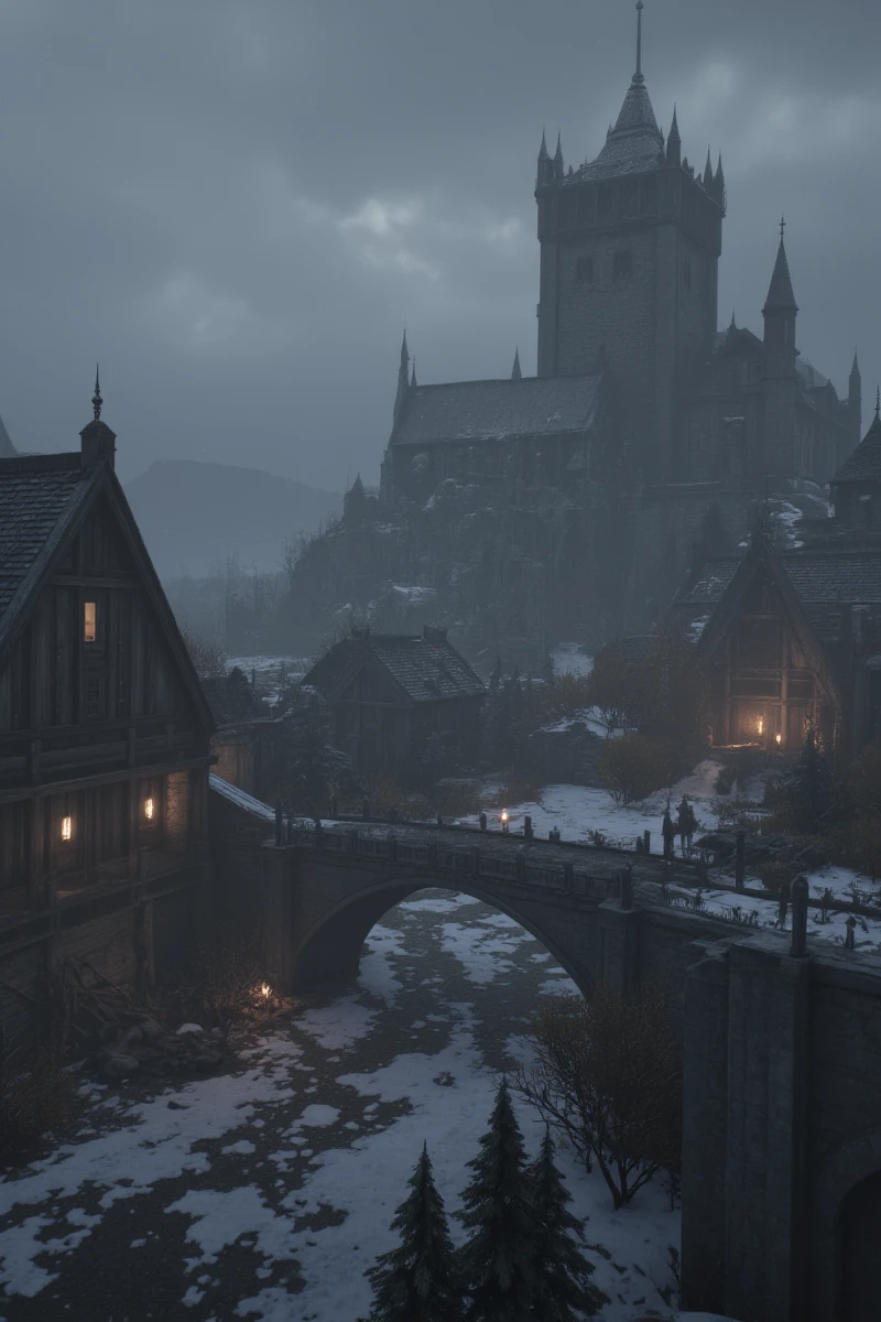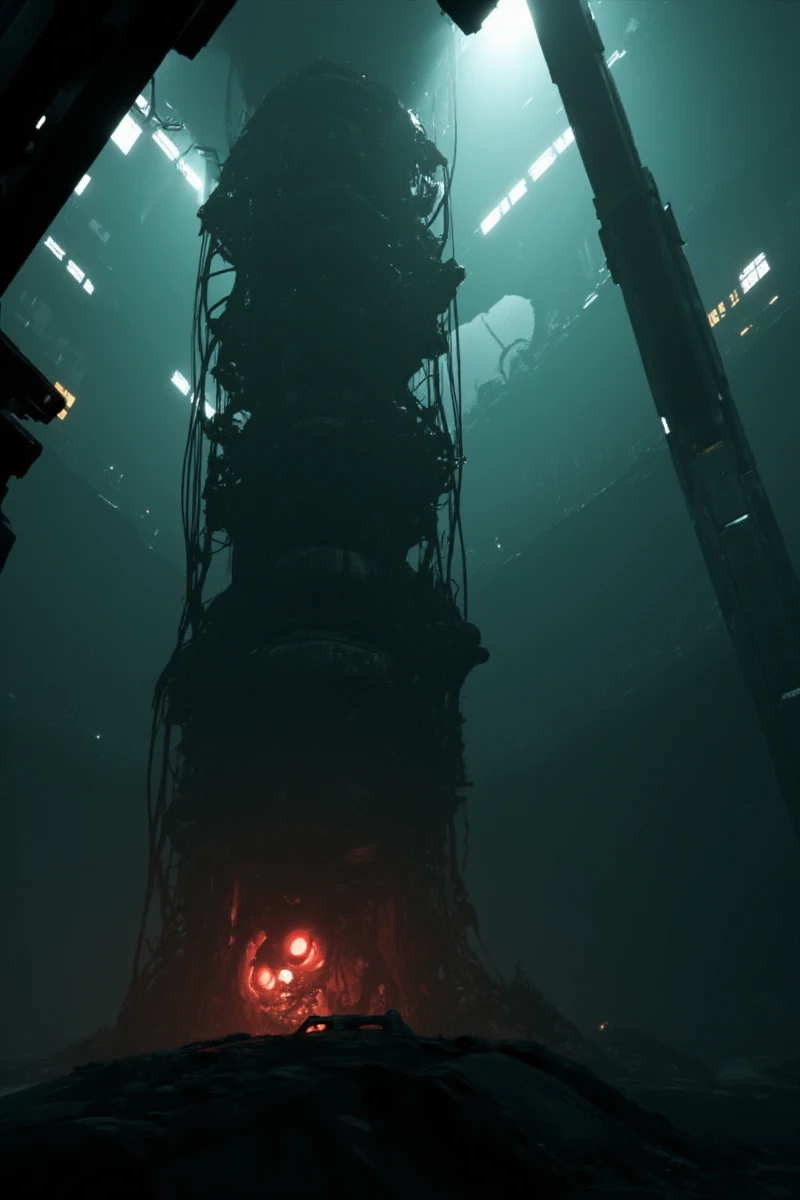 Dark cinematic CG art style, featuring elements such as medieval, gothic, sci-fi, adventure, mystery, horror, alien military bases, wasteland factories, natural landscapes, village towns, and dimly lit cellar interior environments.