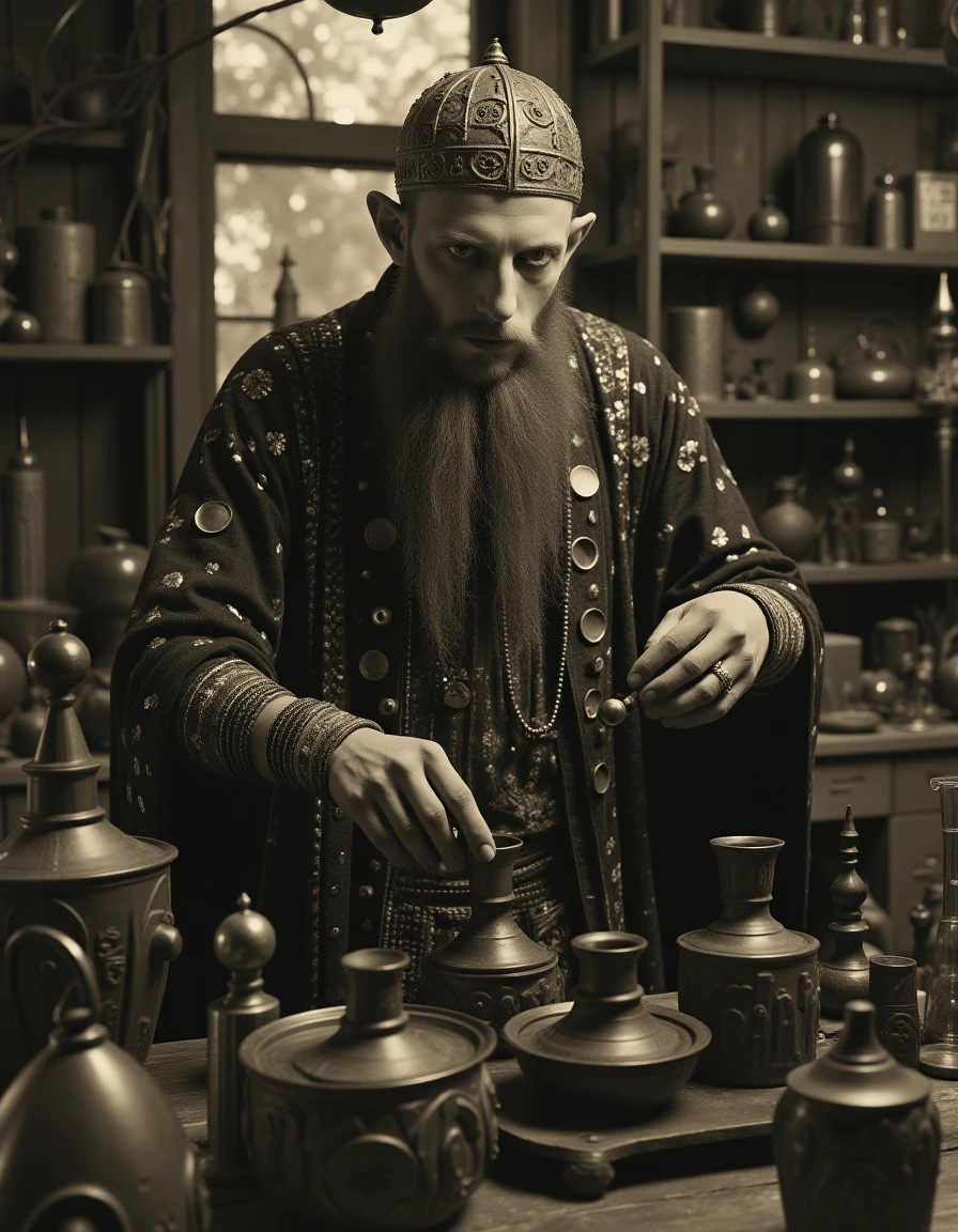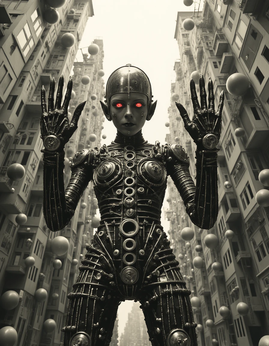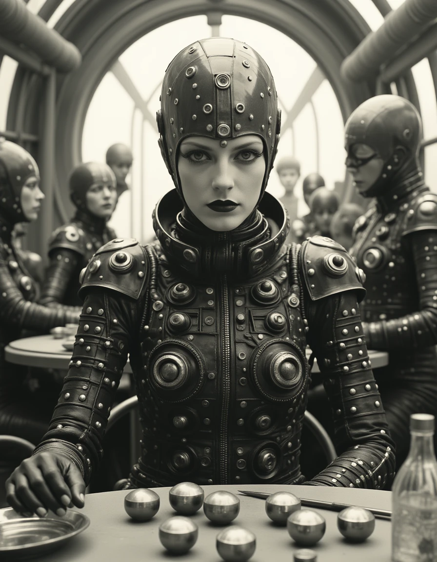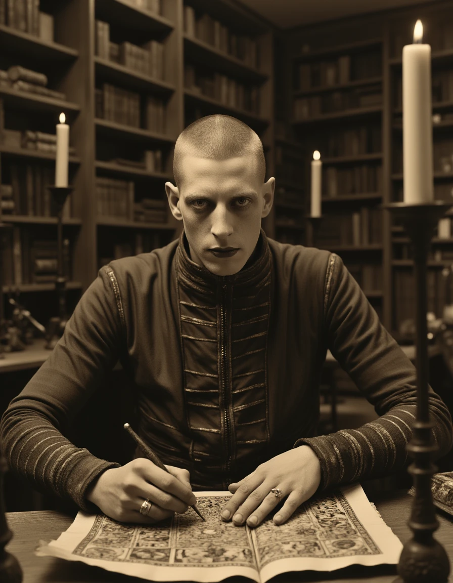The Weird World style draws inspiration from surreal and avant-garde influences, blending elements of the bizarre with a retro-futuristic aesthetic. This style features mechanical or organic forms integrated with human elements, creating a sense of otherworldliness and uncanny beauty. It often plays with monochromatic or muted color schemes, as seen in the sepia or black-and-white tones that give the image a vintage yet timeless feel. Inspired by artists like Claude Cahun (but no photo of him was used for training) , it emphasizes bold contrasts, intricate details, and symbolic, dream-like imagery. The result is a fusion of technology and identity, where the human form is altered and abstracted in a striking, thought-provoking way.