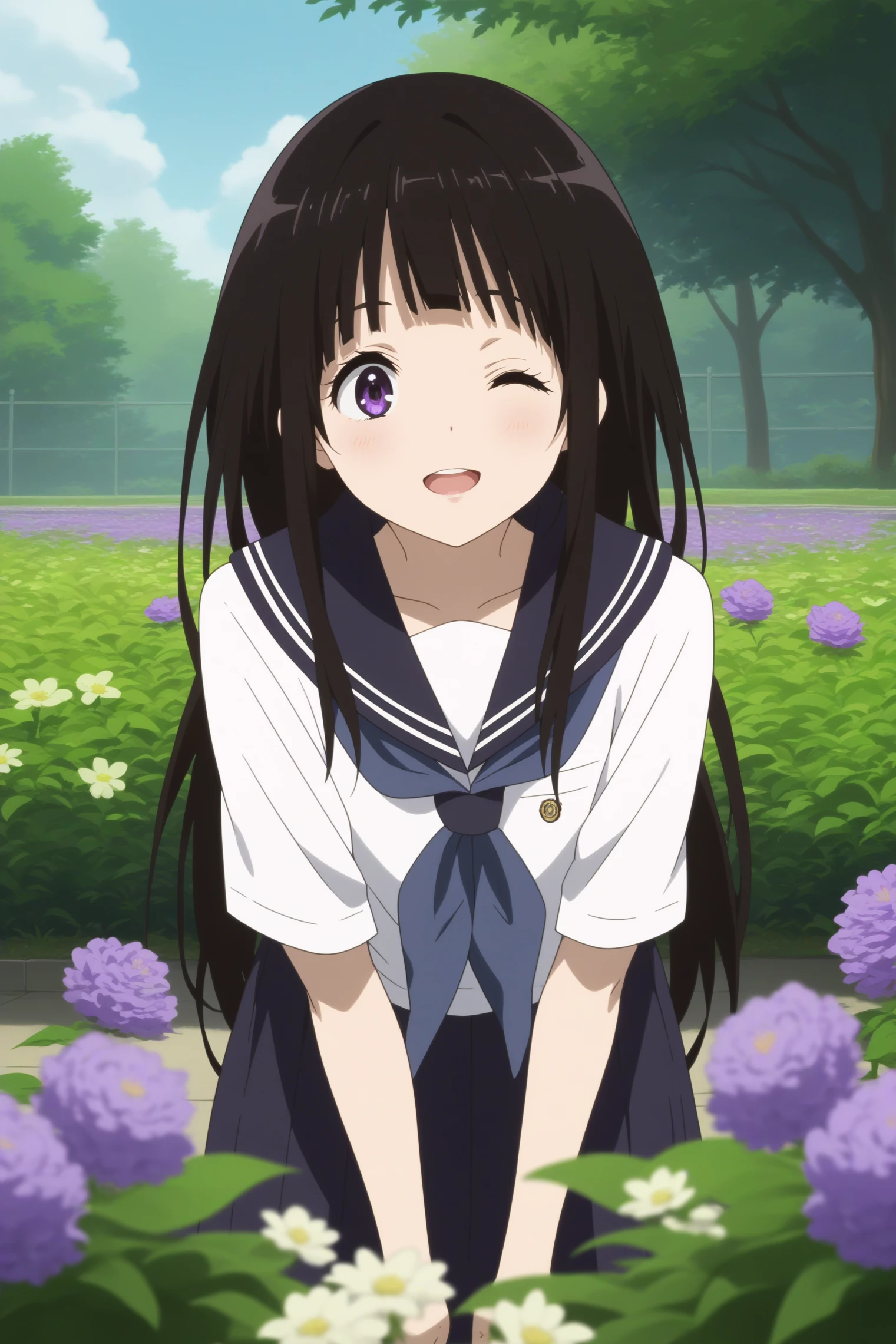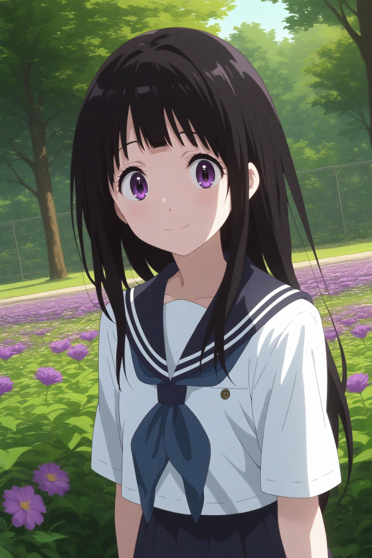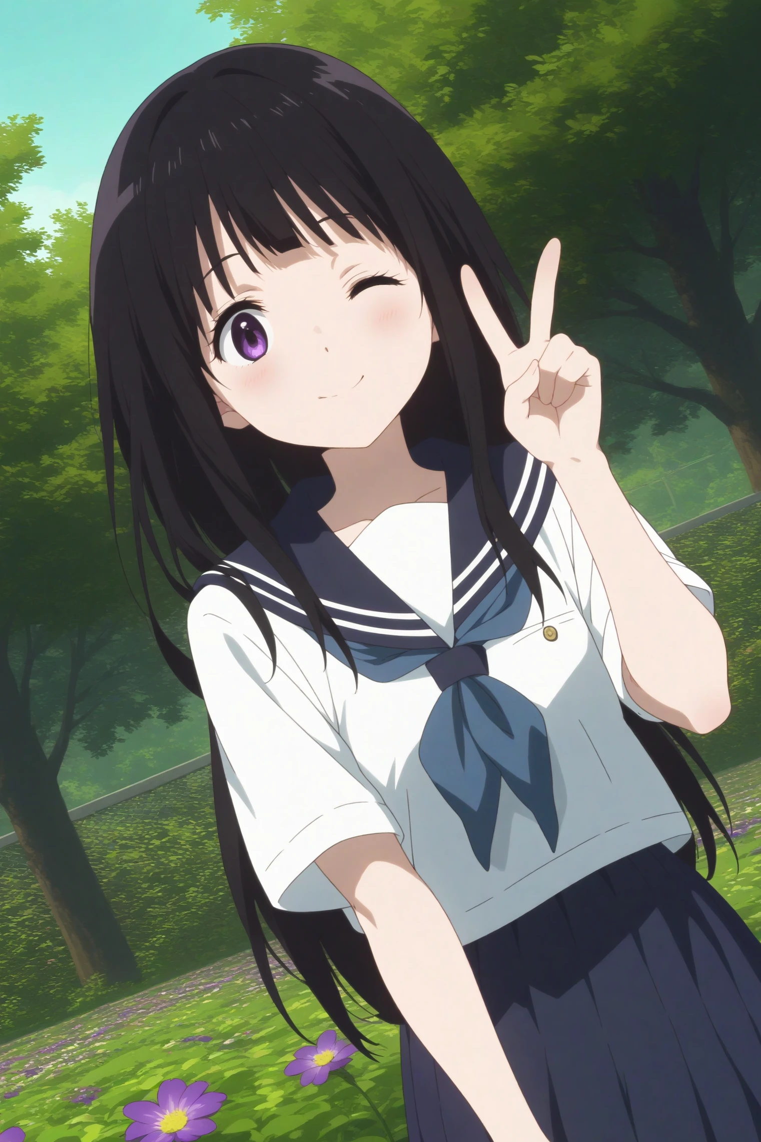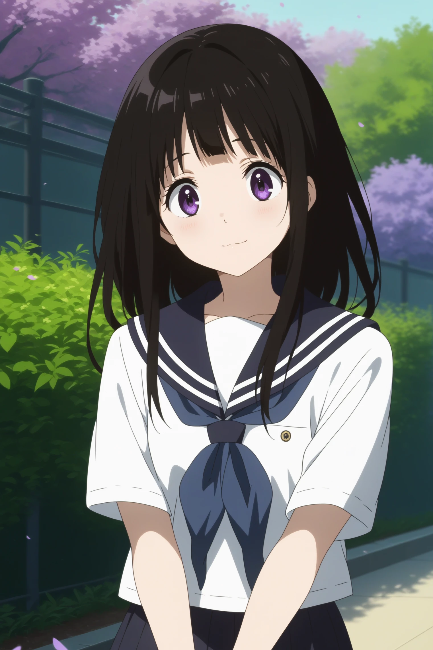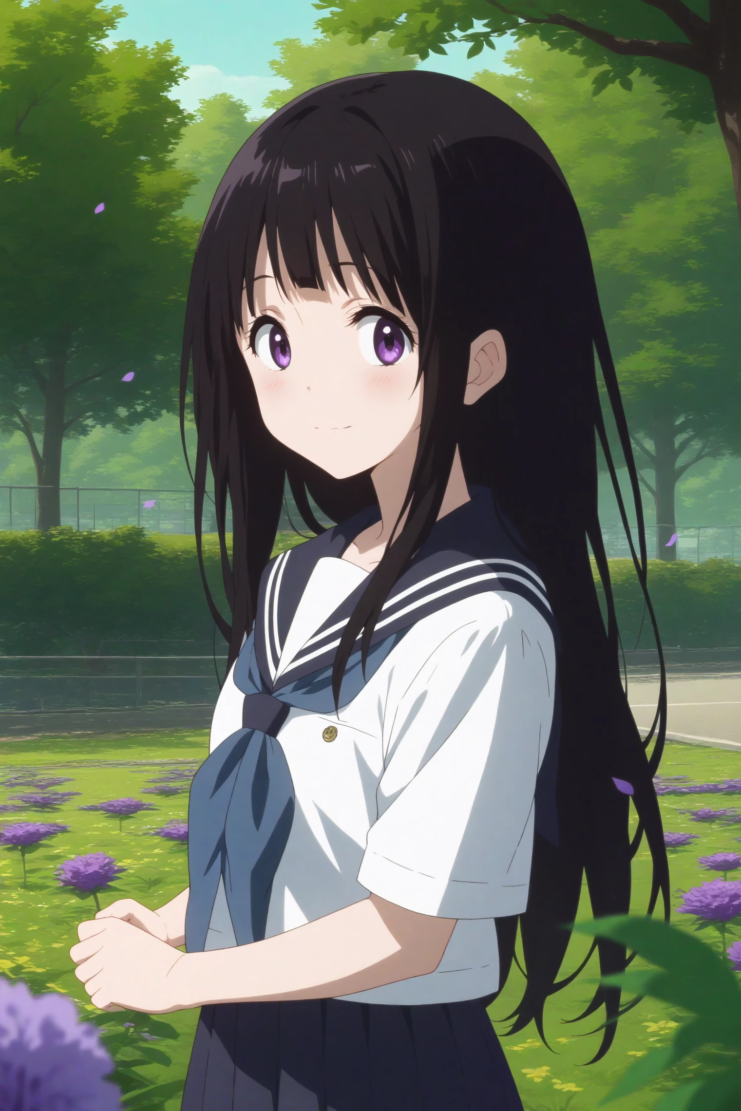Triggers : 1girl,solo,eru chitanda,long hair,school uniform,kamiyama high school uniform (hyouka),serafuku,bangs