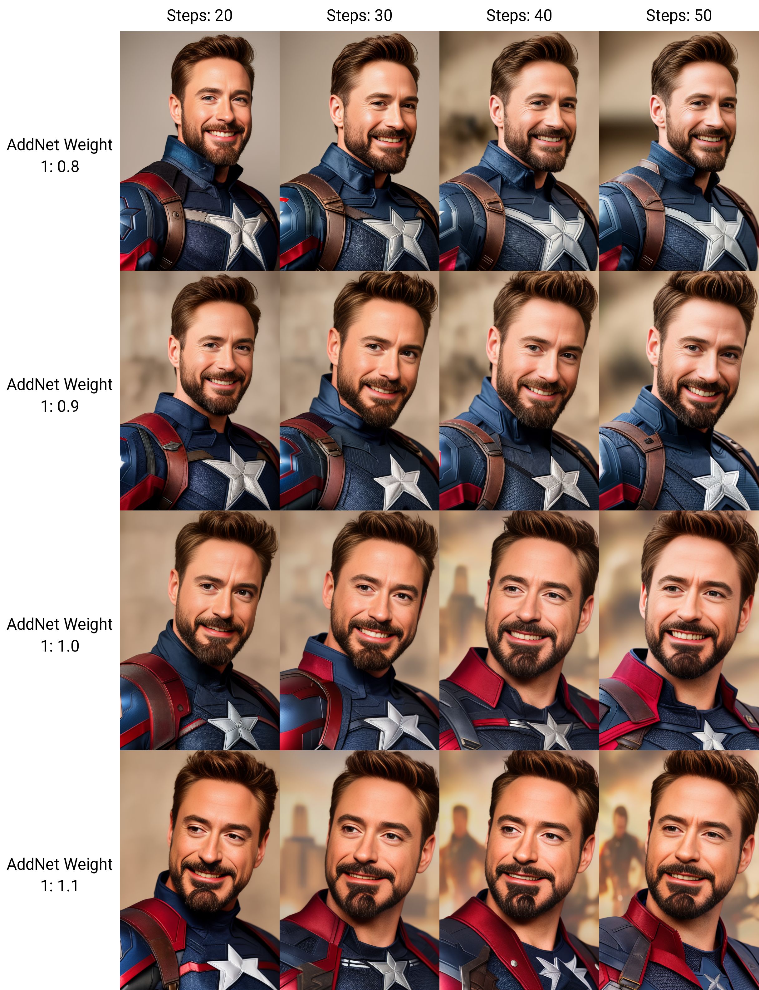 One recommendation, try to avoid the word "suit". It was almost impossible to find pictures of this man where he doesn't wear a suit, and so the dataset was heavily biased towards suit pictures. Use the word "armor" or "cosplay" instead to put him in different outfits.