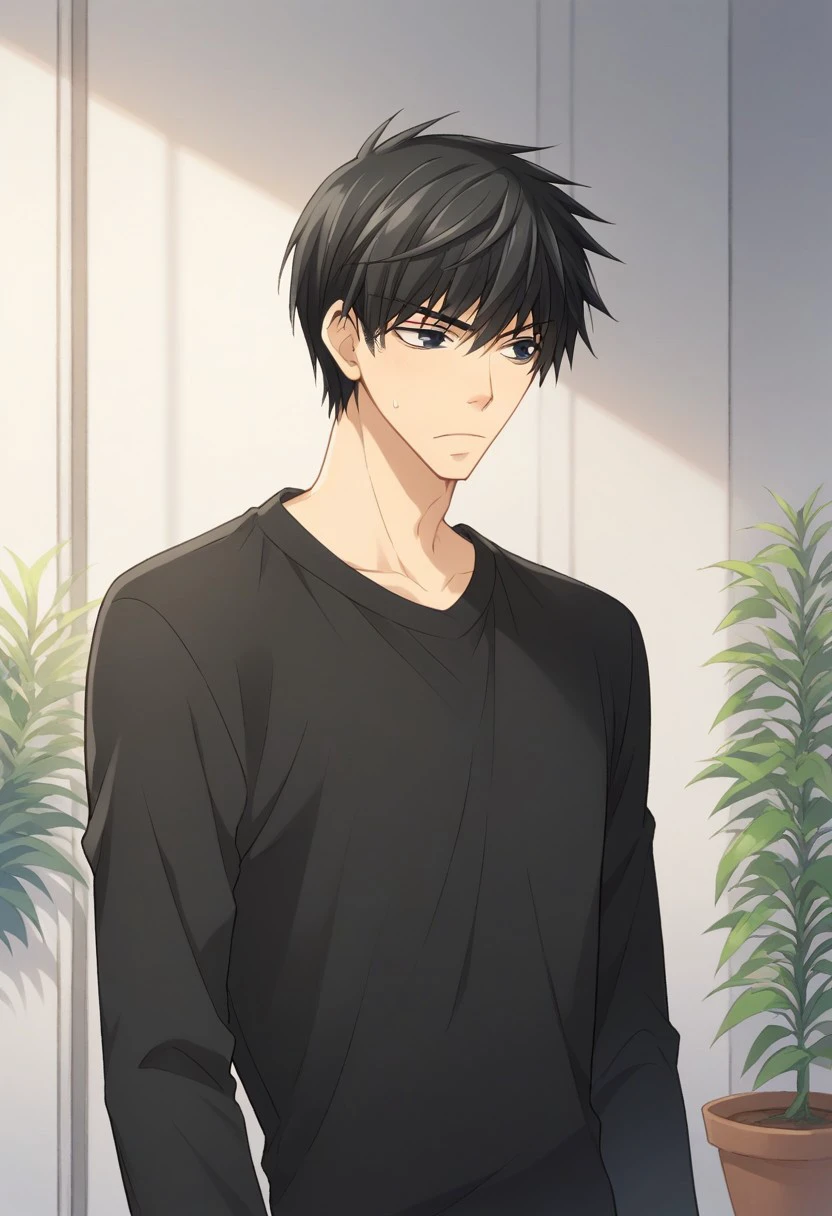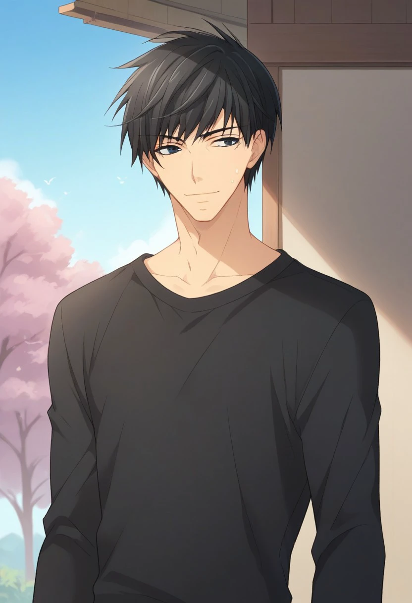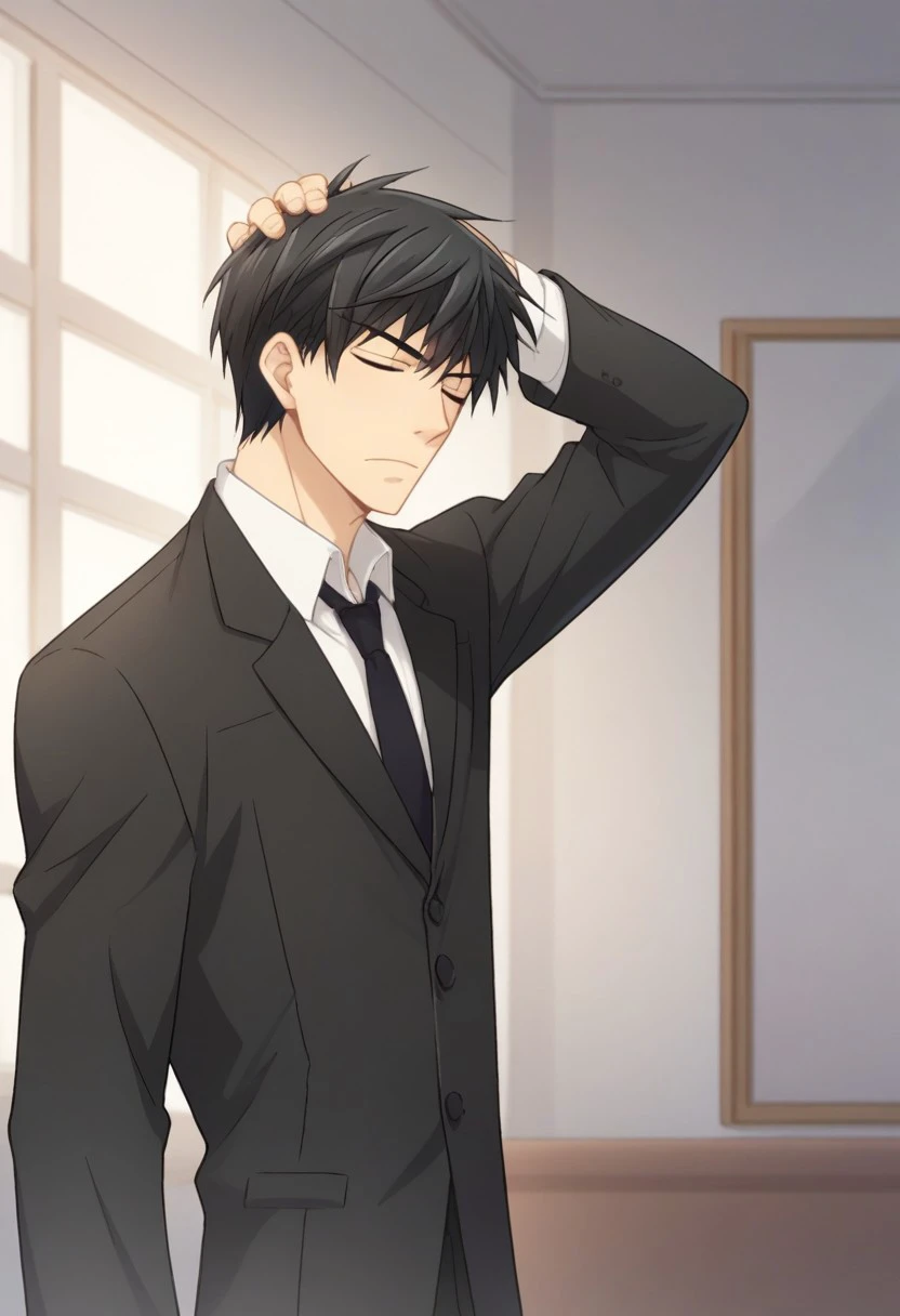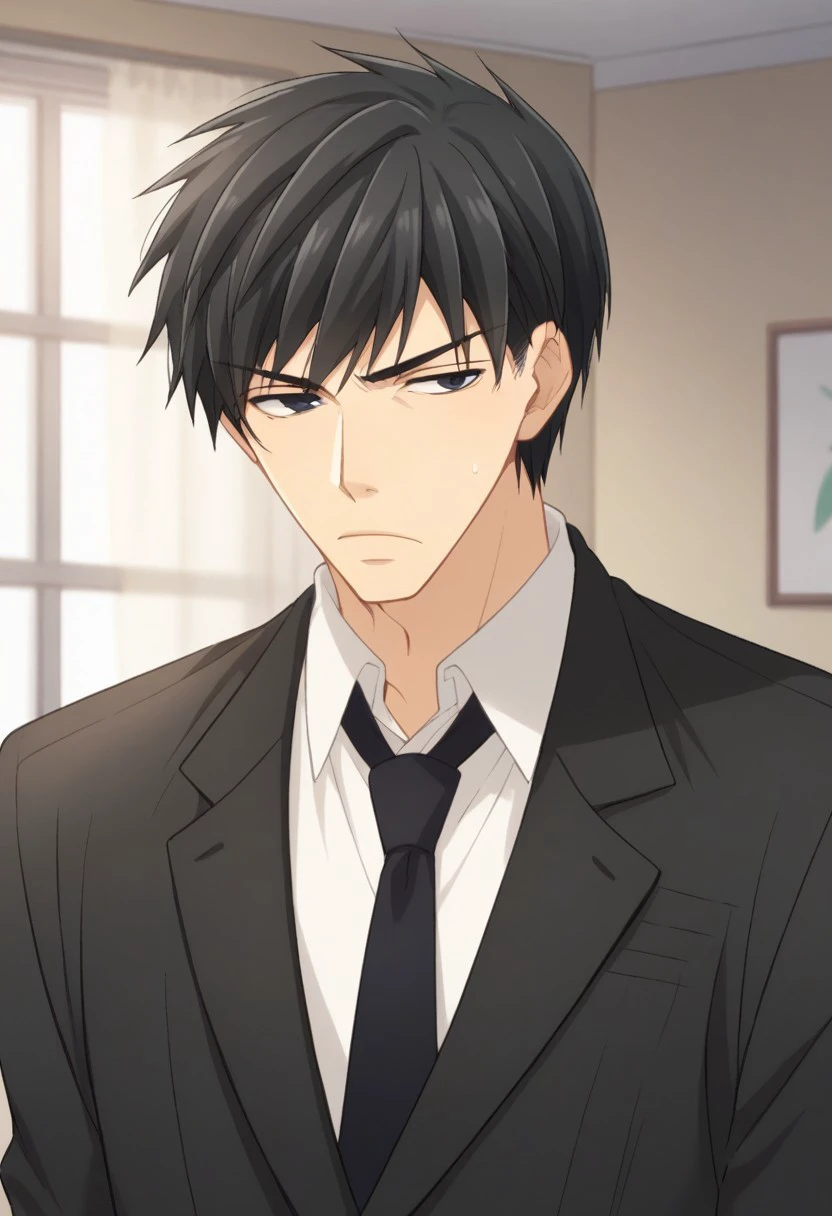 miyagi, 1boy, male focus, necktie, formal, suit, black hair, black eyes, black necktie, shirt, white shirt, collared shirt,