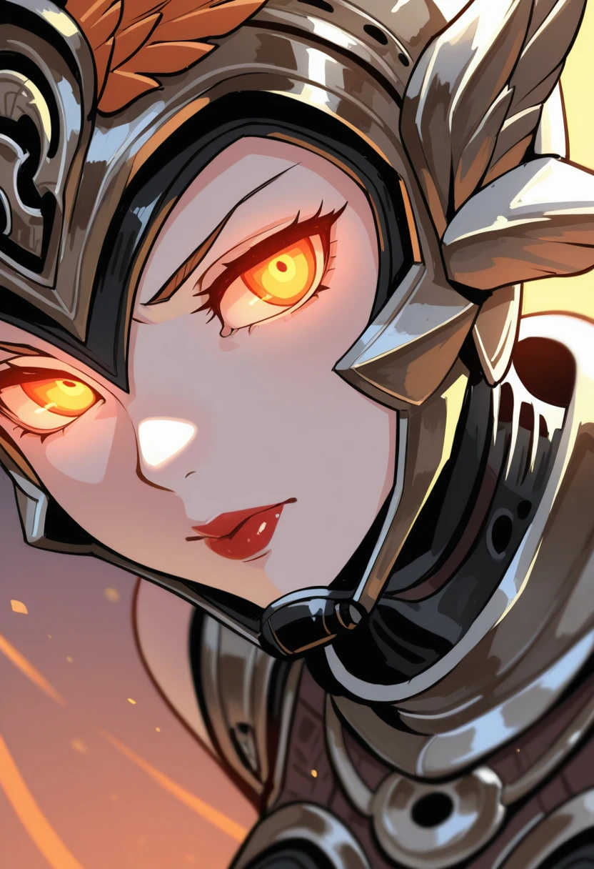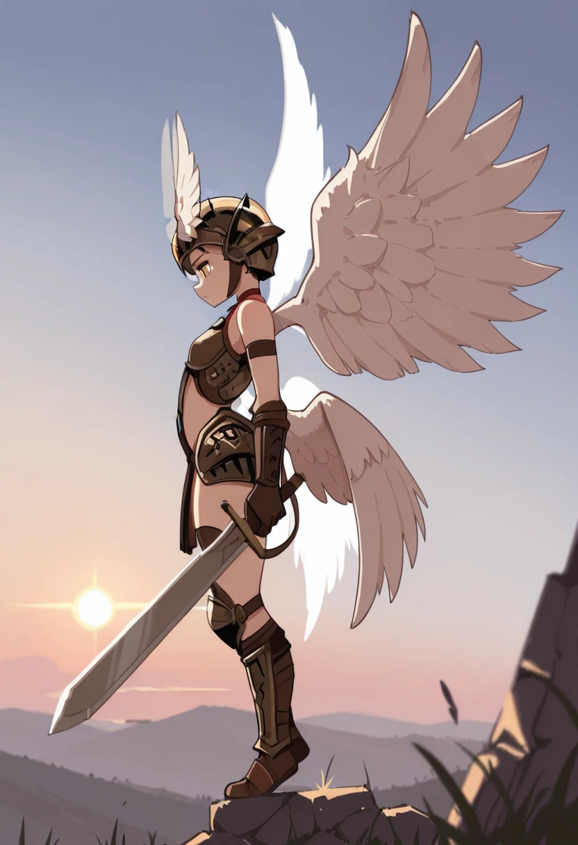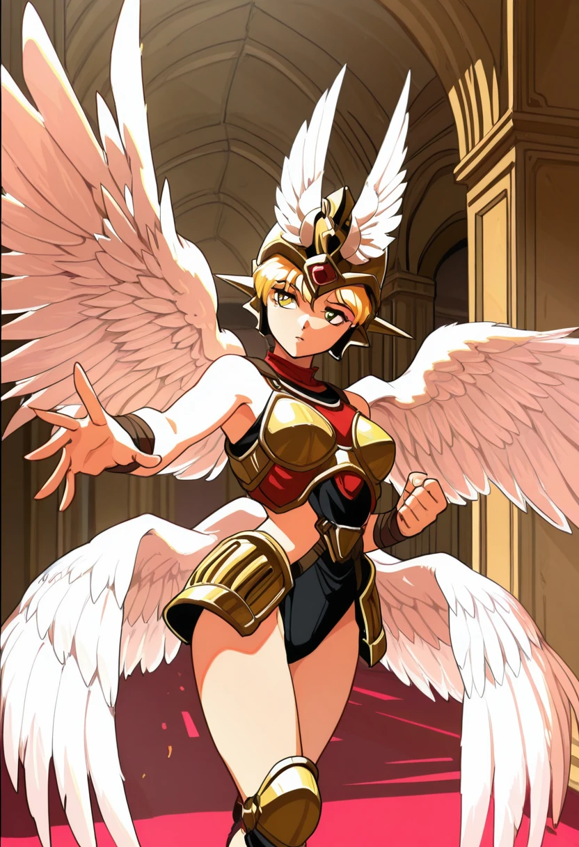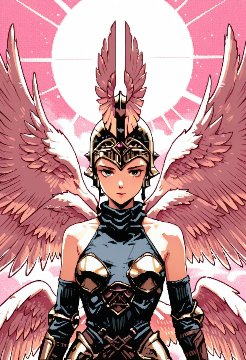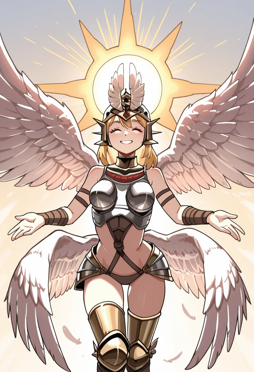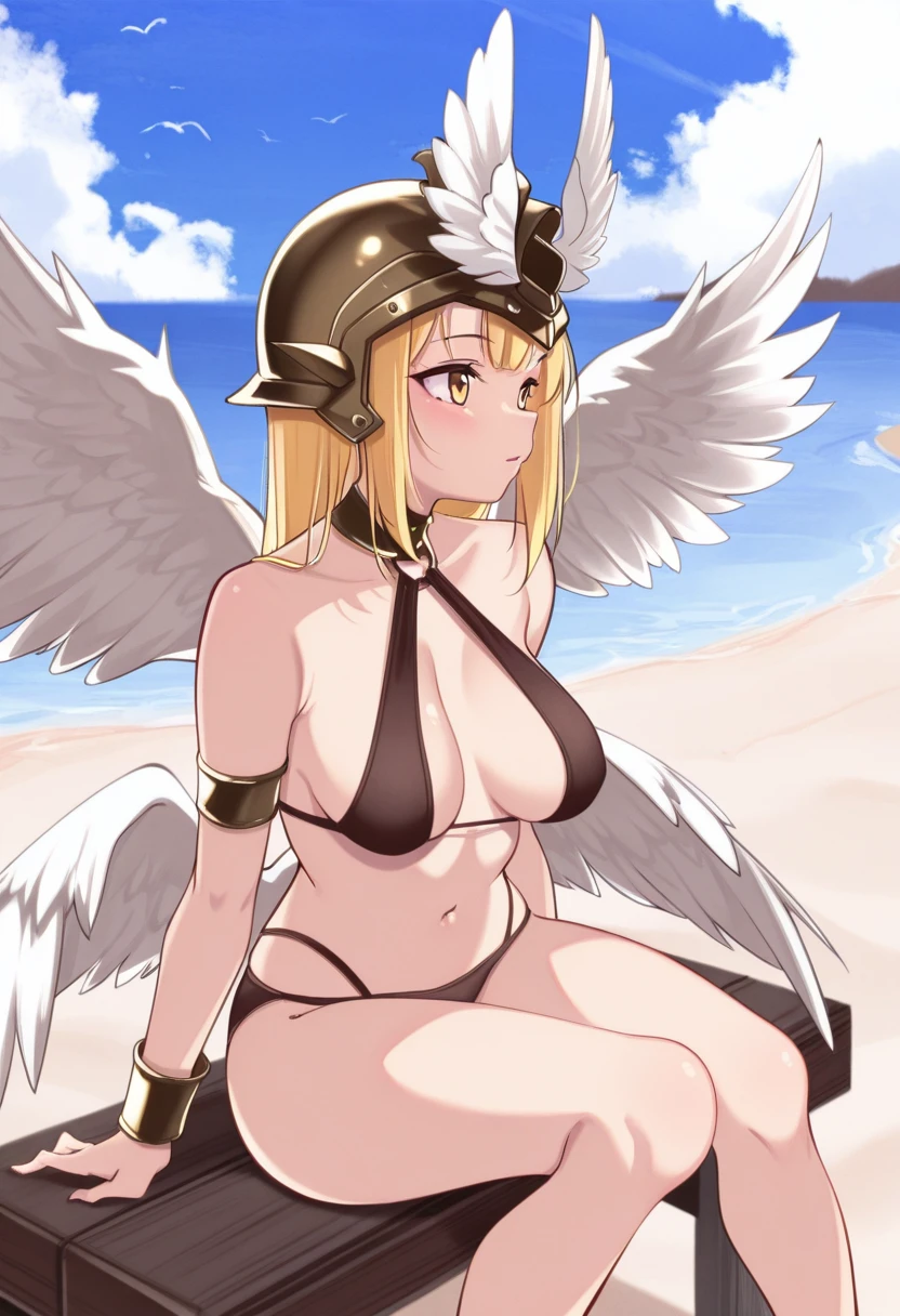 armor, helmet, winged helmet, boobplate, bare shoulders,