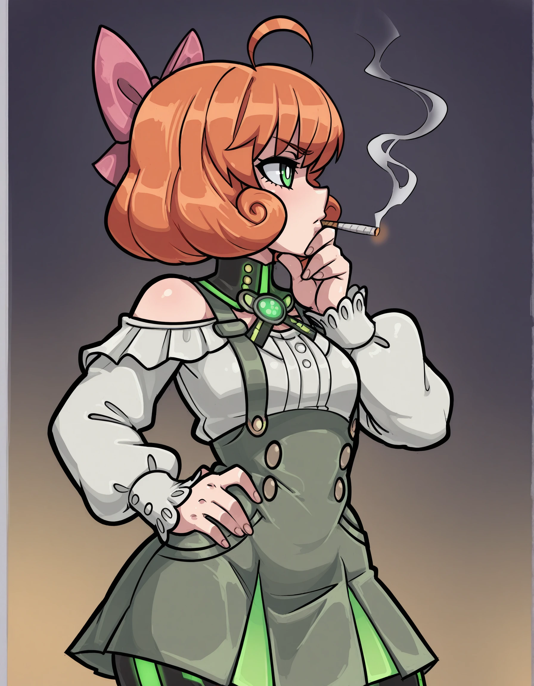profile, cigarette, smoking, hand on hip, hand on chin