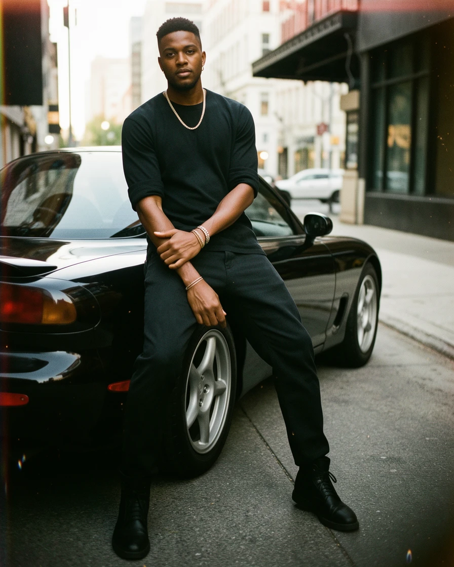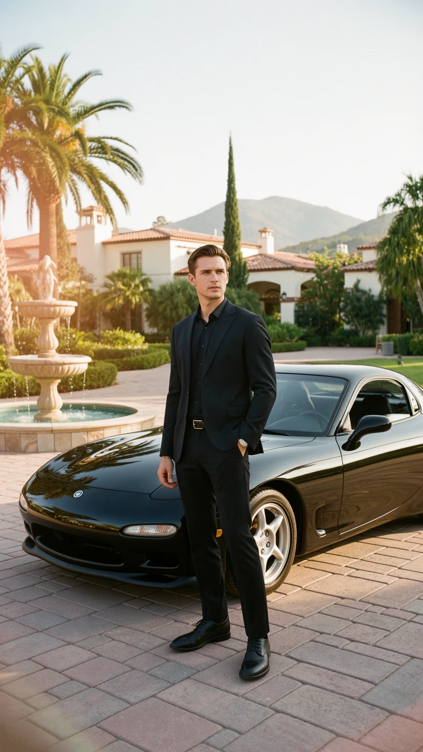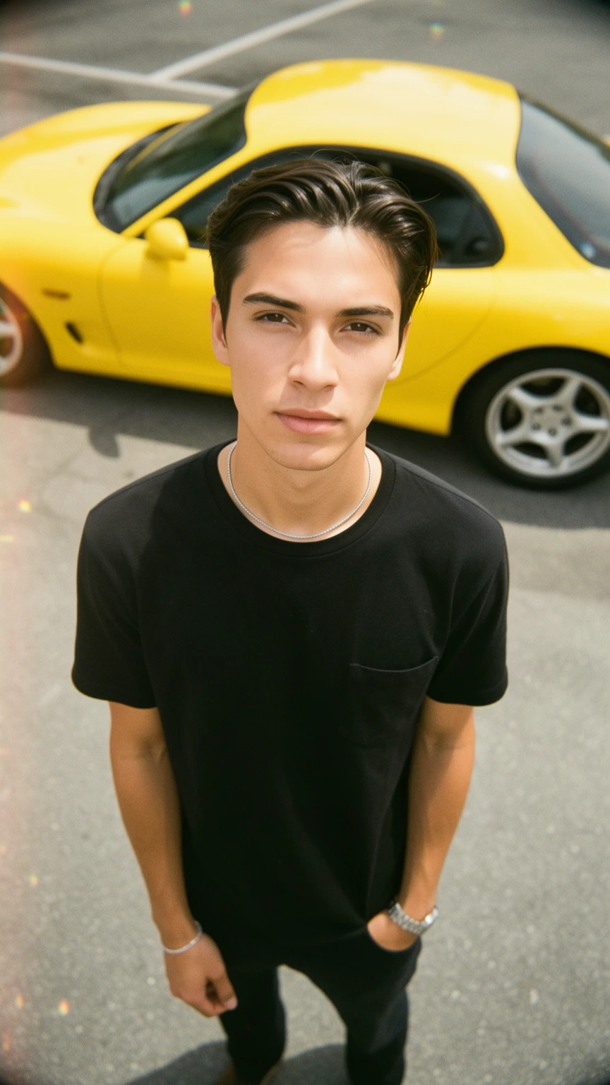 Likes to give the front wheel 6 fingers while the rear mostly gets 5. Strength of .7 with 16 steps seems like a good starting point. It gets warpy/stretched as you go higher strength .9+, and with lower strengths like .3 it morphs into other cars or modded. If you're adding a person I find adding "tall" helps size them better "photo of a tall model leaning on a RX-7".