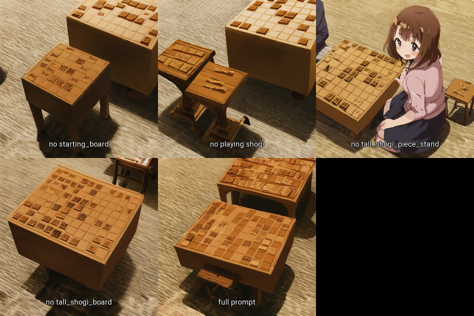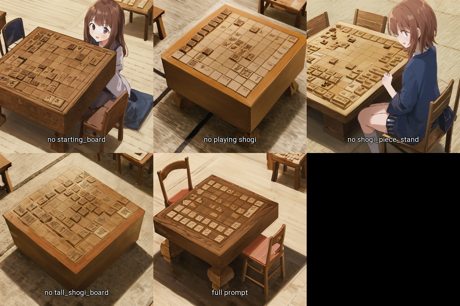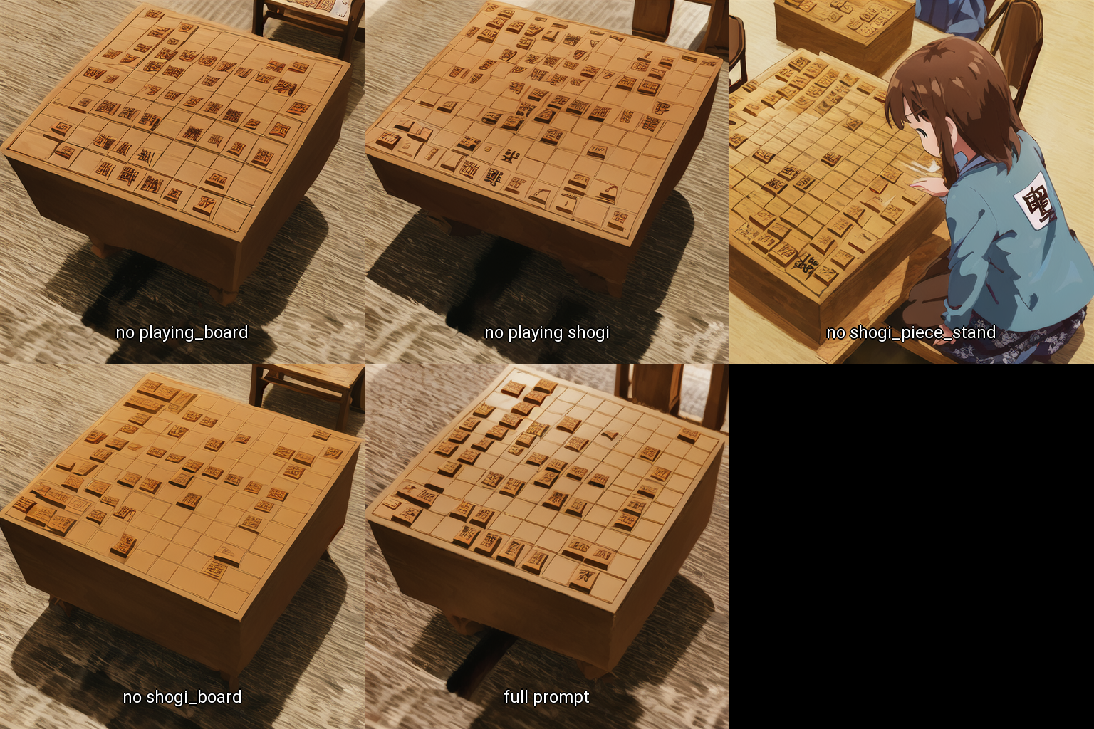 This is my first time training a model and the quality product is far from ideal. Nevertheless, it does encourage the diffusion model to better understand what Shogi is, compared to not using a LoRA.