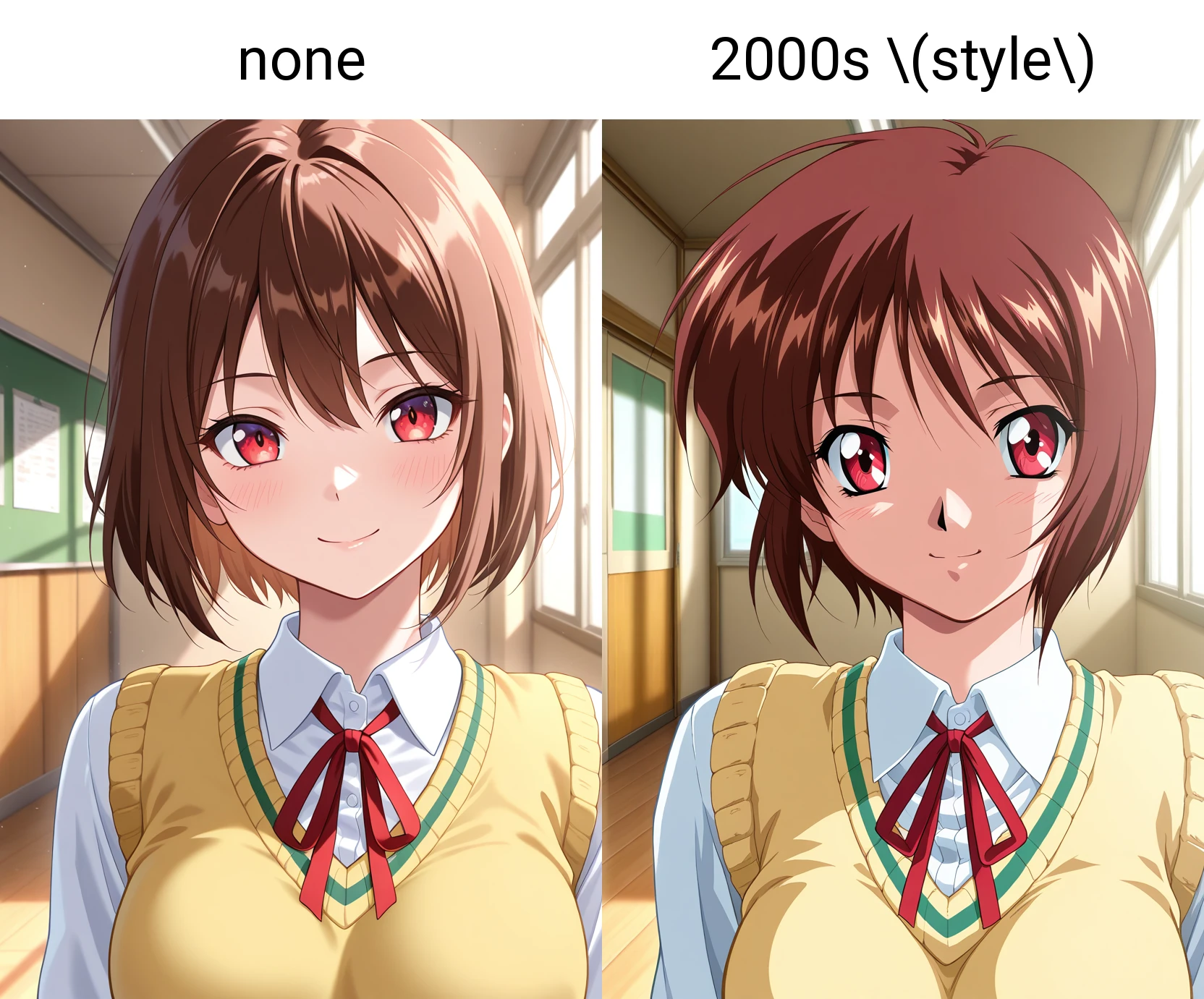プロンプトに "2000s (style)" を使った方が、ゲームの雰囲気に近くなります。