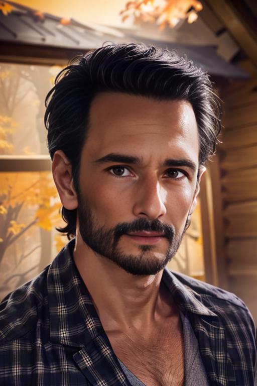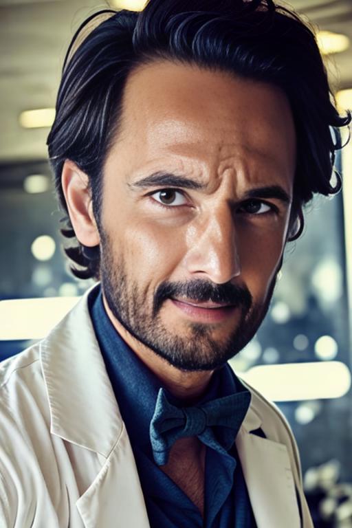 This is Brazilian actor Rodrigo Santoro, famous for his roles in 300, Lost, Westworld, Explode Coração, and Charlie's Angels Full Throttle. It works well with most realistic models. I tried to use different pictures of him through the years and without facial hair, but it doesn't always work (see my images). Weights 0.8-1 usually work well.