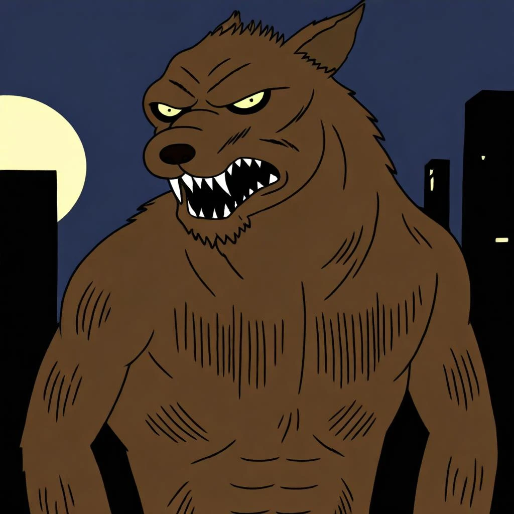 A werewolf character from the 2nd episode of Ugly Americans, An American Werewolf in America.