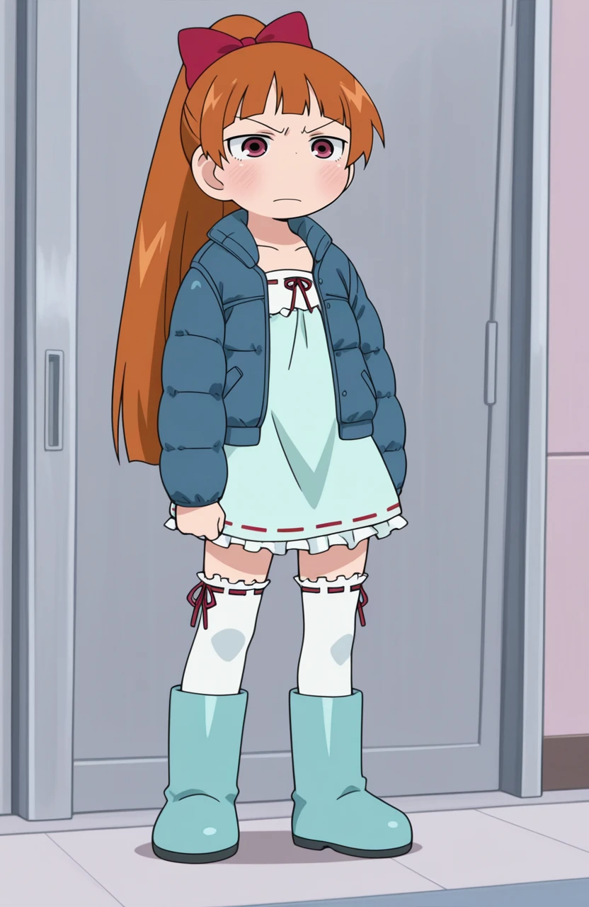 katou mayumi, brown hair, brown eyes, ponytail, hair bobbles, child